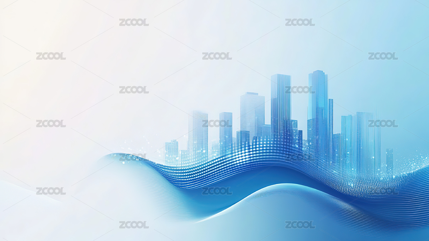 城市剪影蓝色波浪