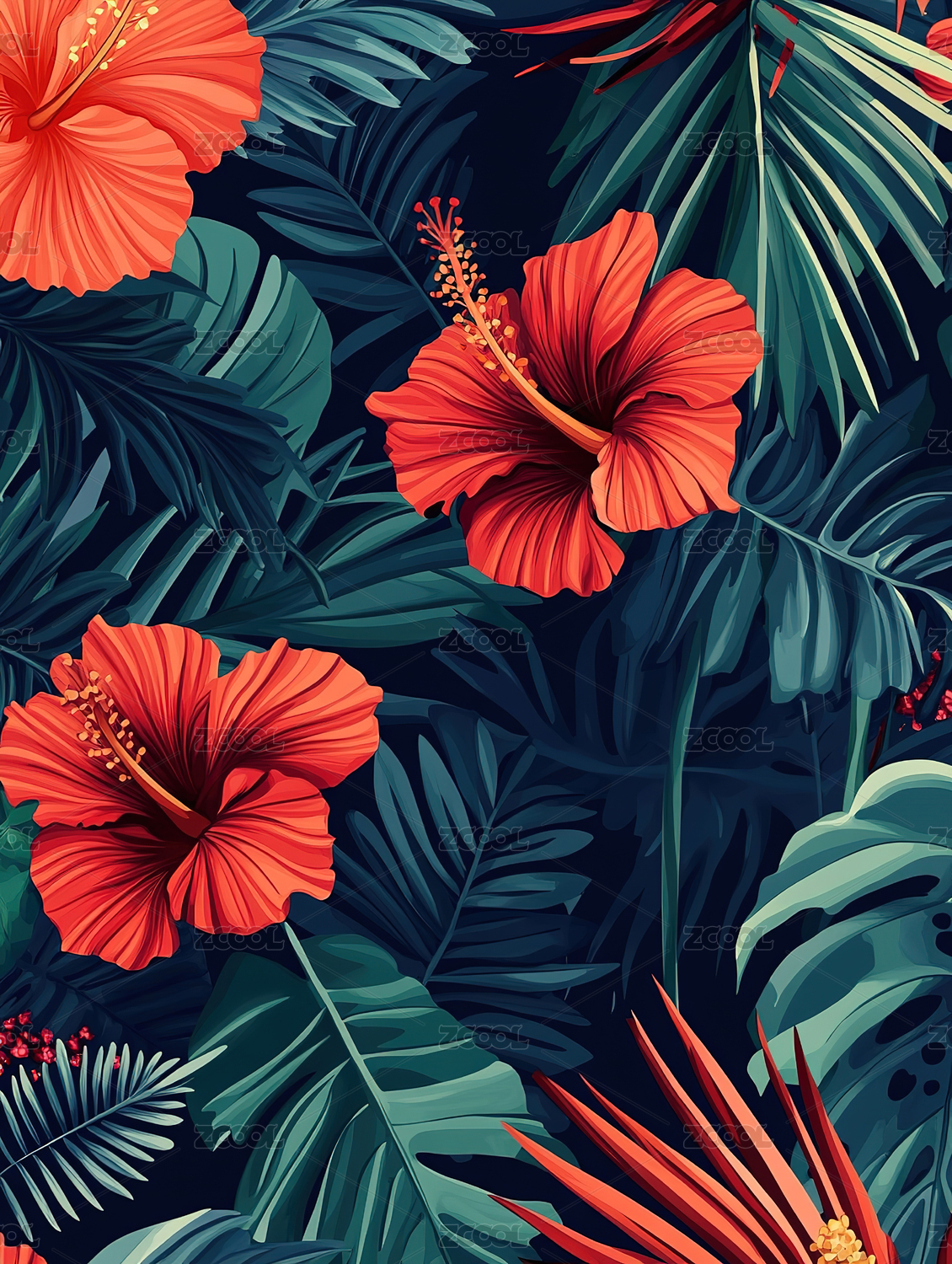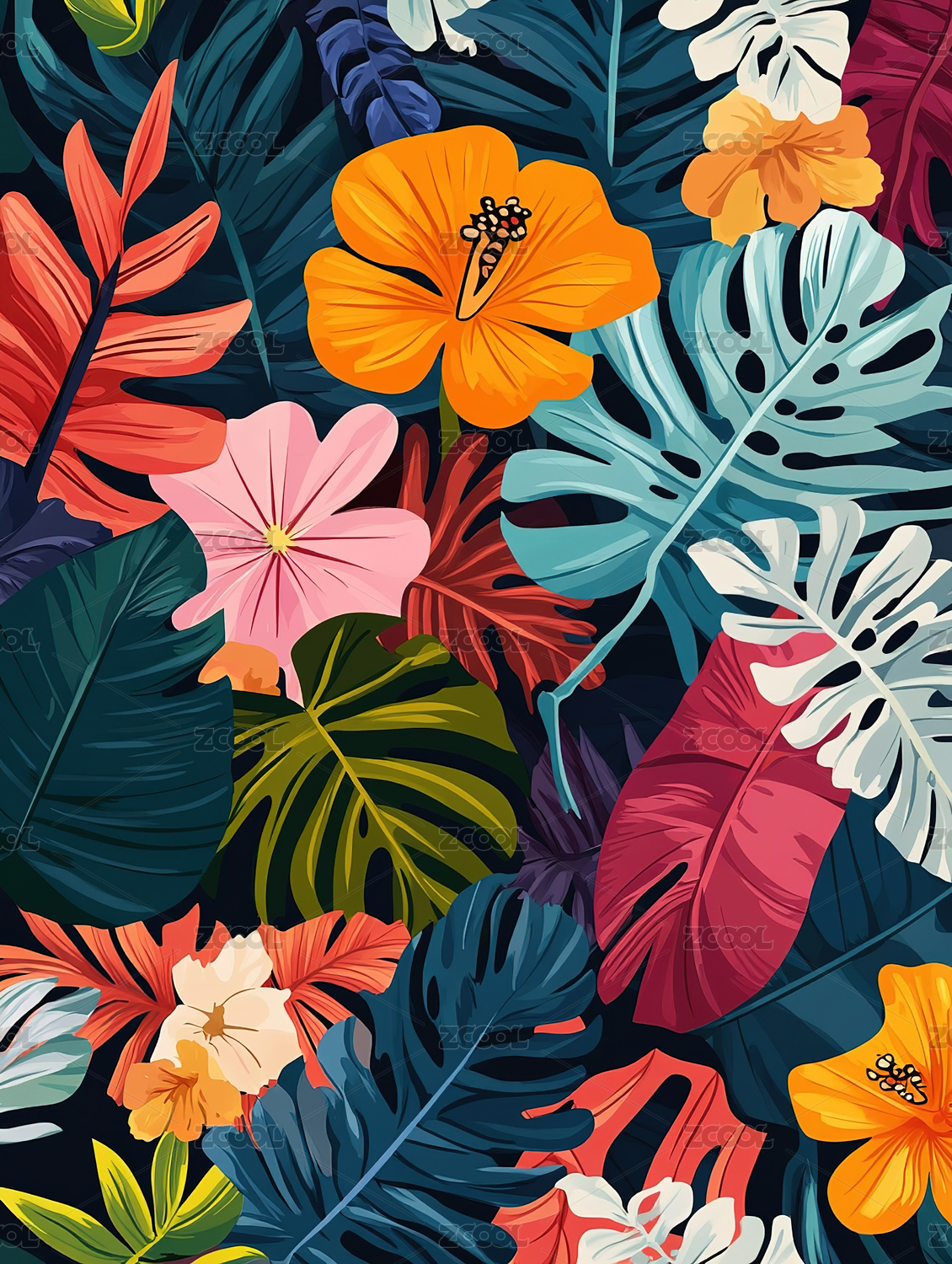 彩色线条花卉重复无缝图案纺织品装饰背景