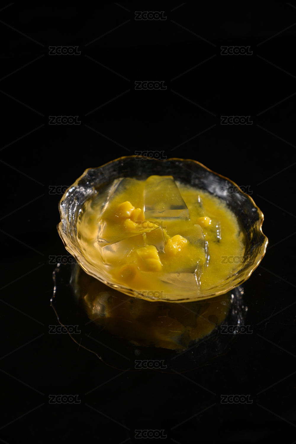 桌面上的碗里的美味可口的芒果凉粉