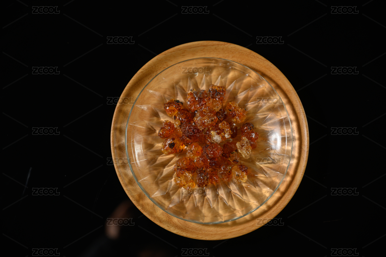桌面上的盘子里的干爽的桃胶