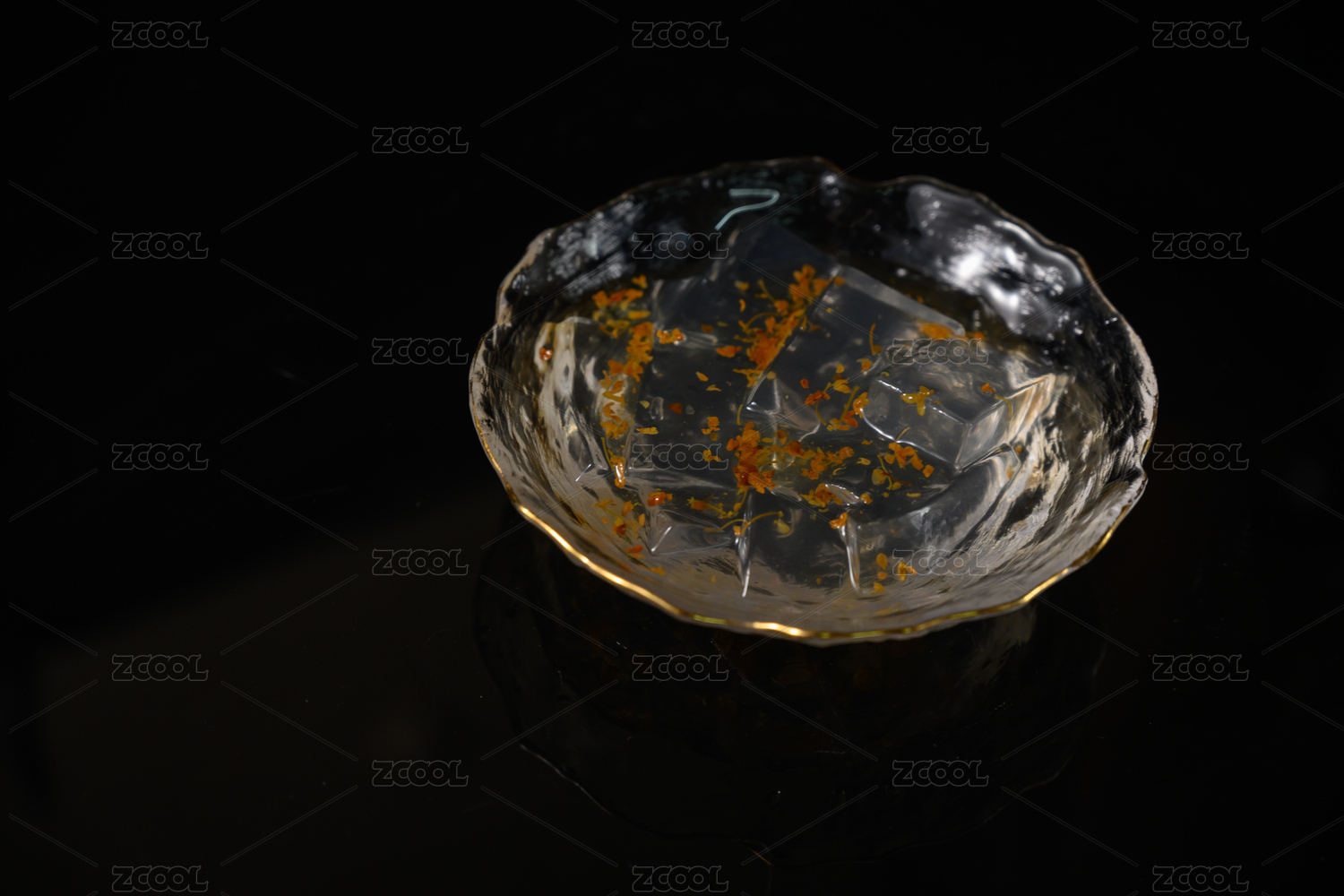 桌面上的碗里的美味可口的桂花凉粉
