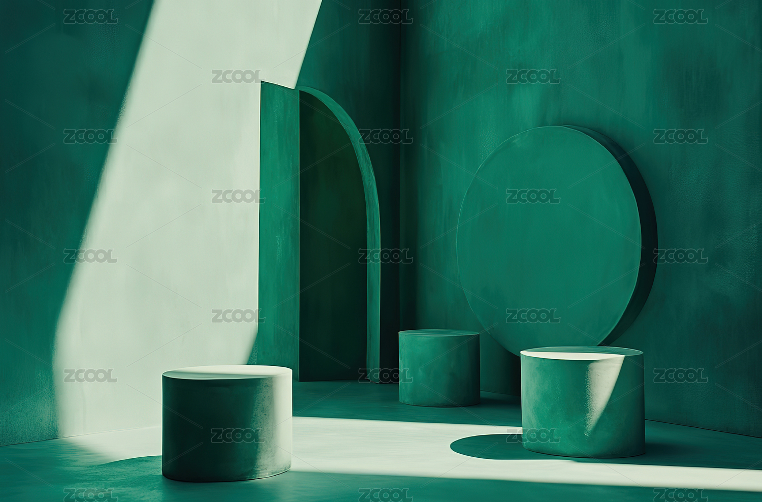 绿色背景下的几何圆柱体