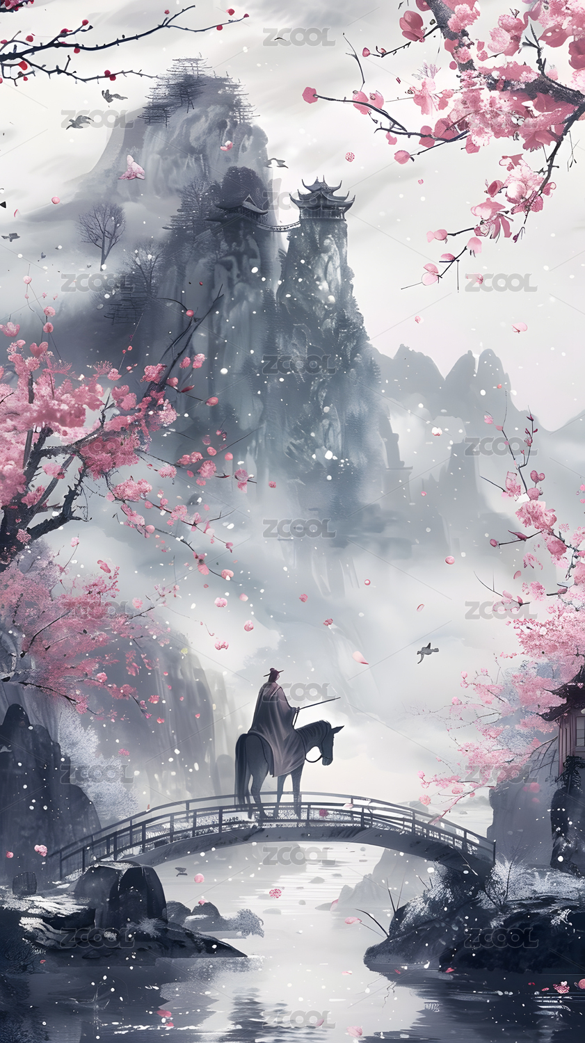 传统,节气,凉棚,历史,建筑,山,图像,一个人,撑伞,古风