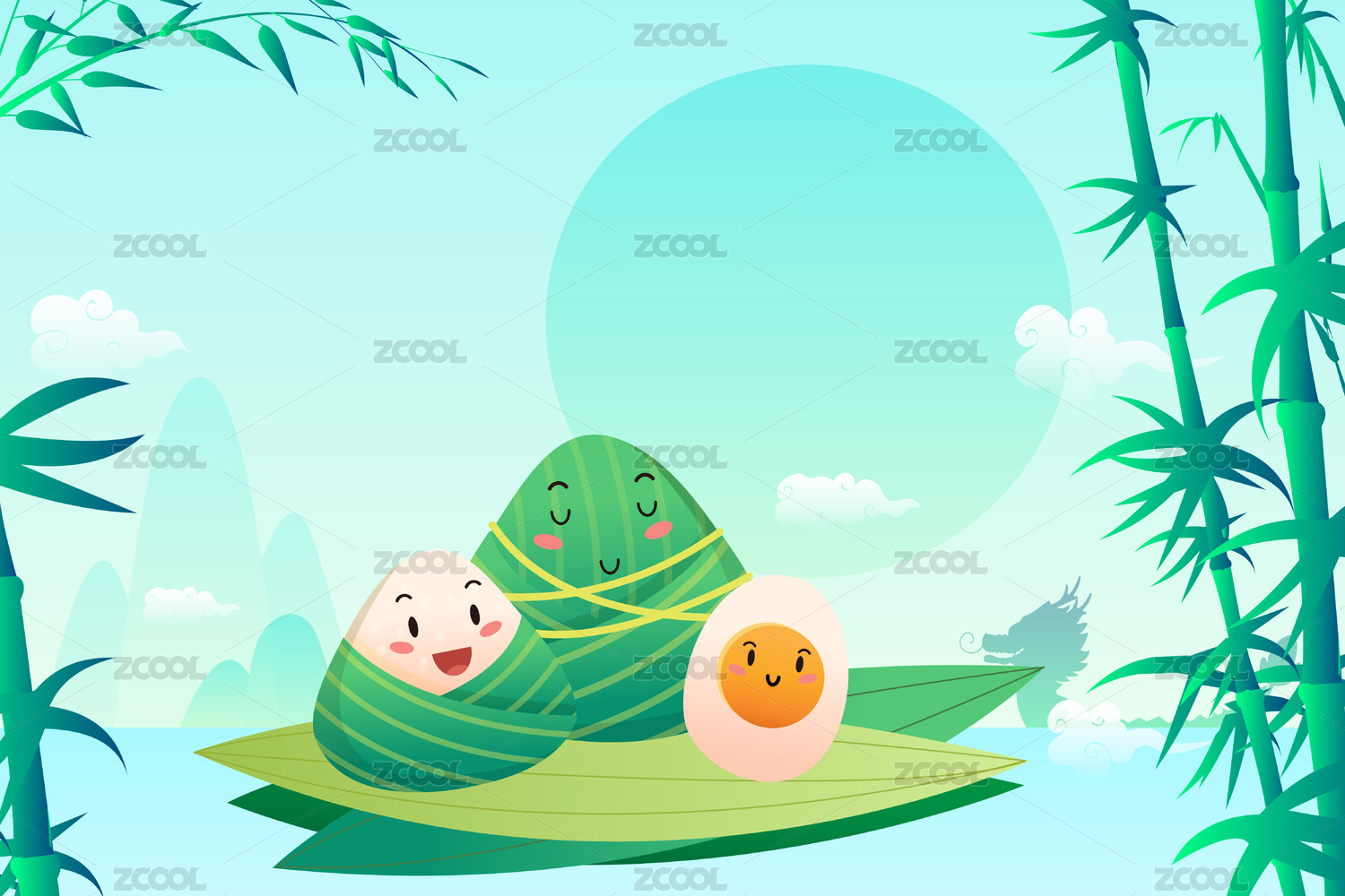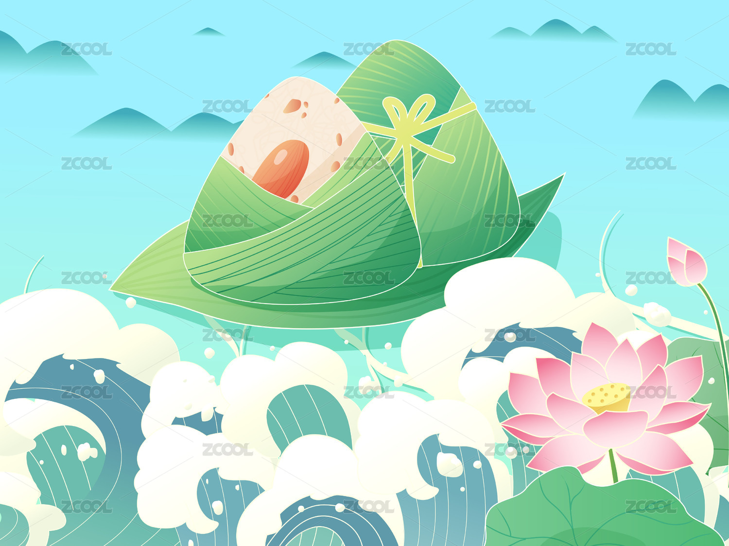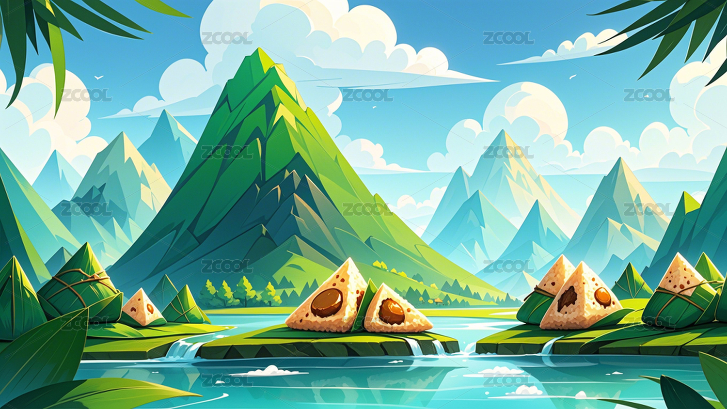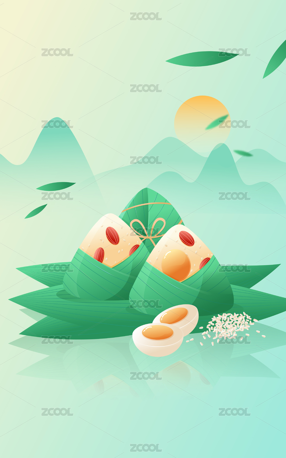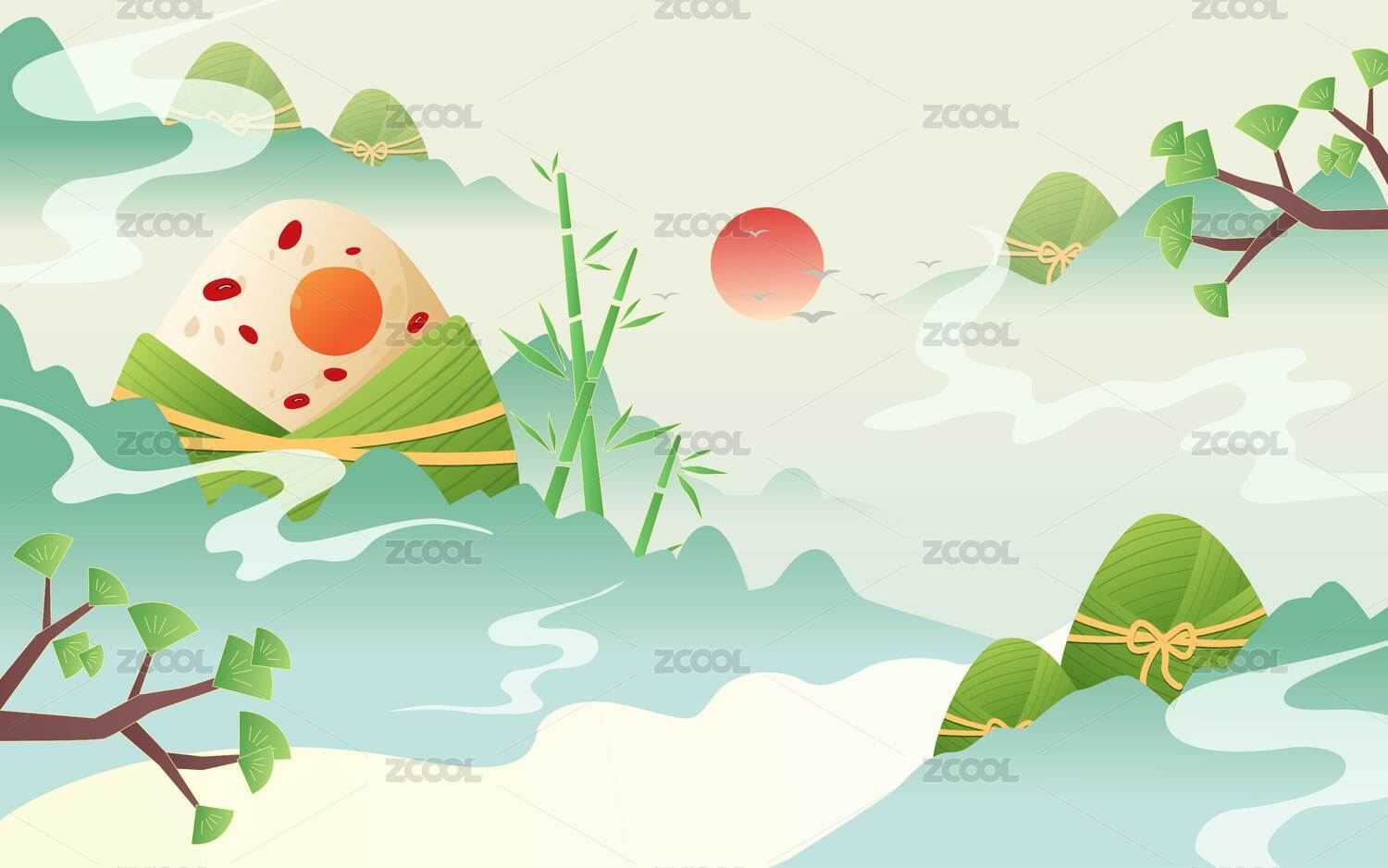 端午节国潮插画粽子青山矢量