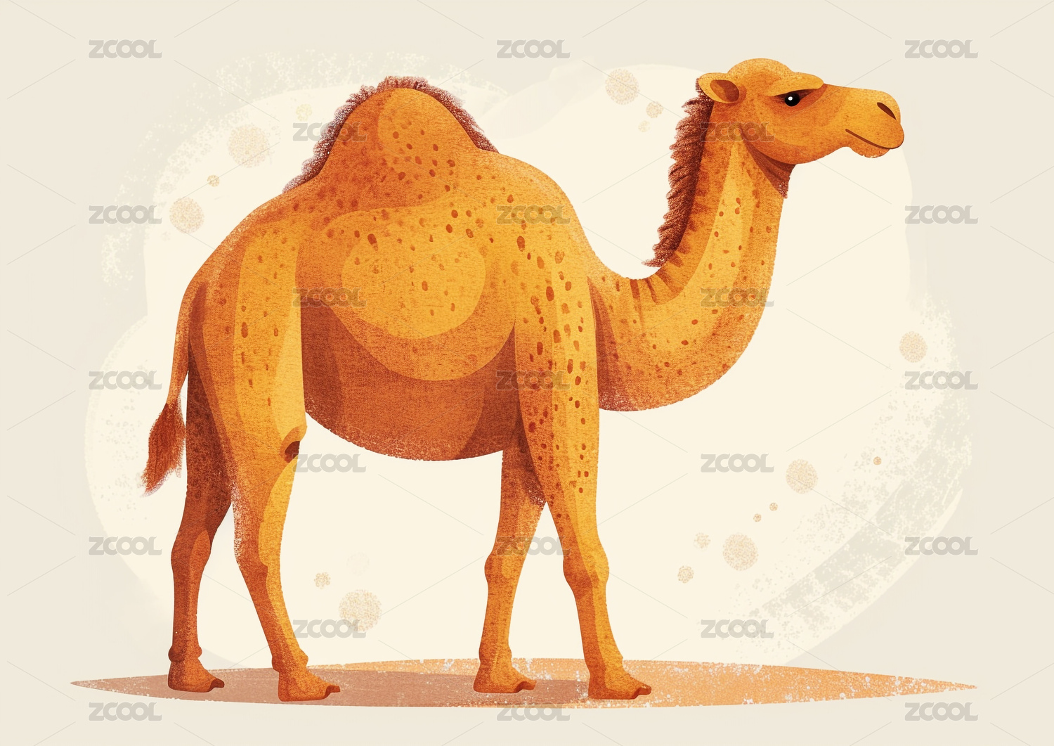 卡通风格沙漠骆驼头像T恤图案装饰插画