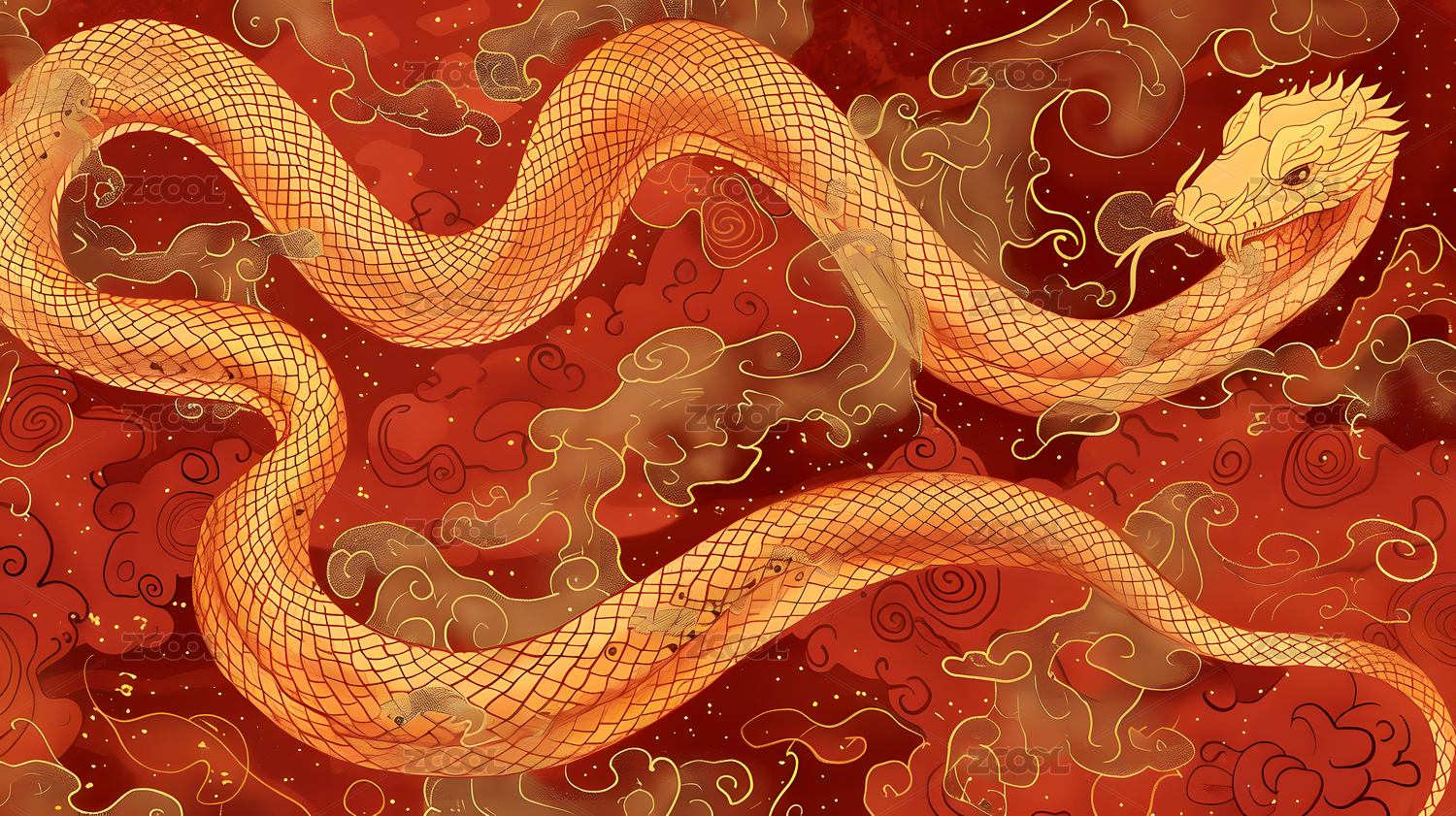 艺术化的景色蛇鳞纹理红色背景巨蛇插画
