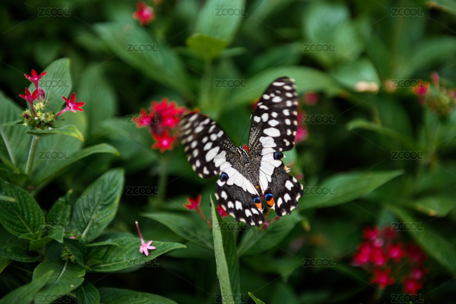 花丛中的凤尾蝶