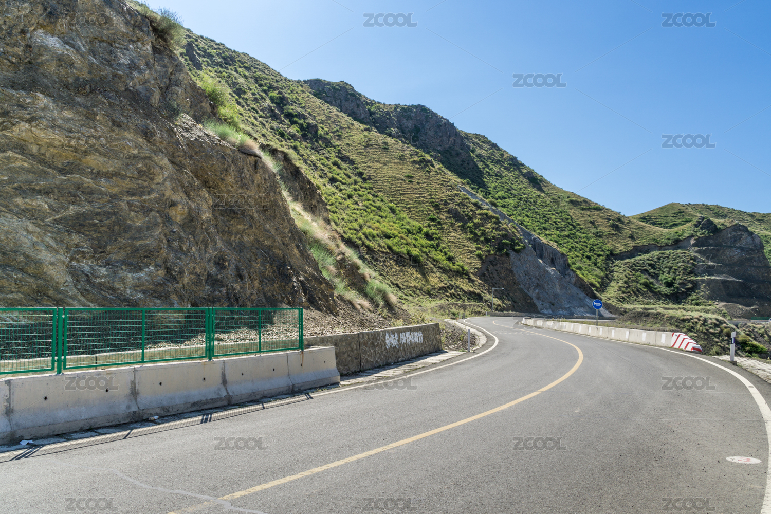 夏季晴天中国新疆G217独库公路戈壁山地弯道