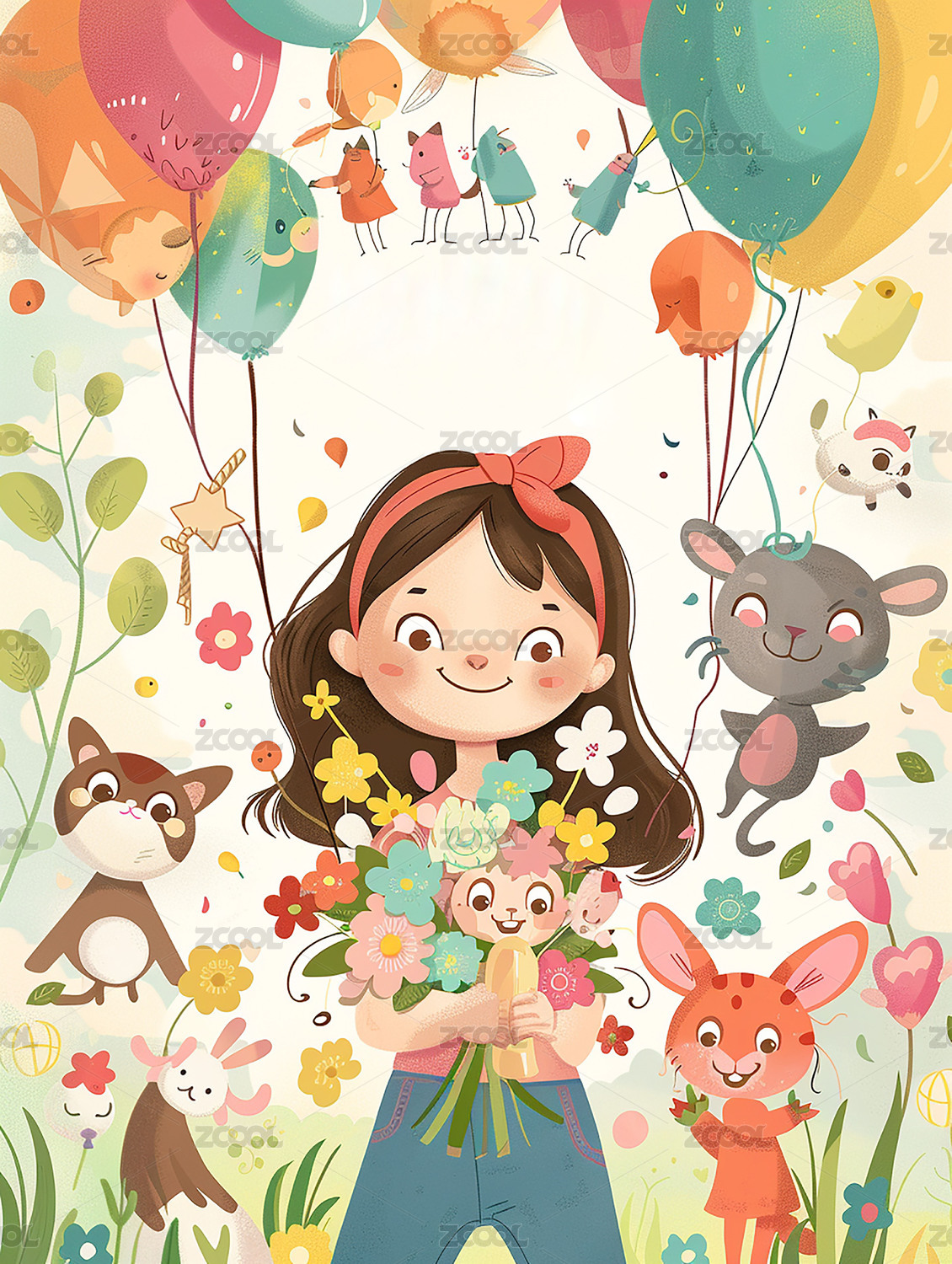 拿着气球的孩子欢乐的庆祝节日儿童节插画