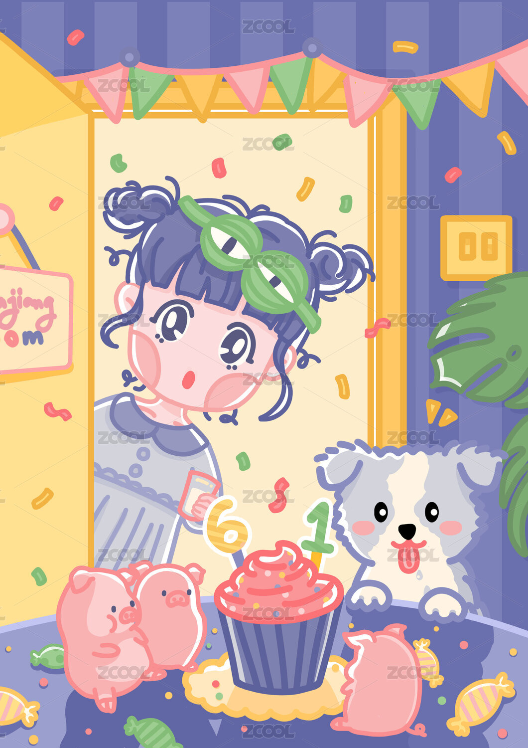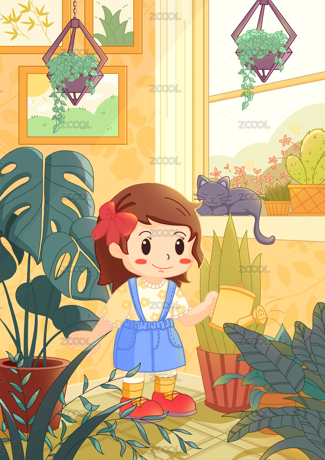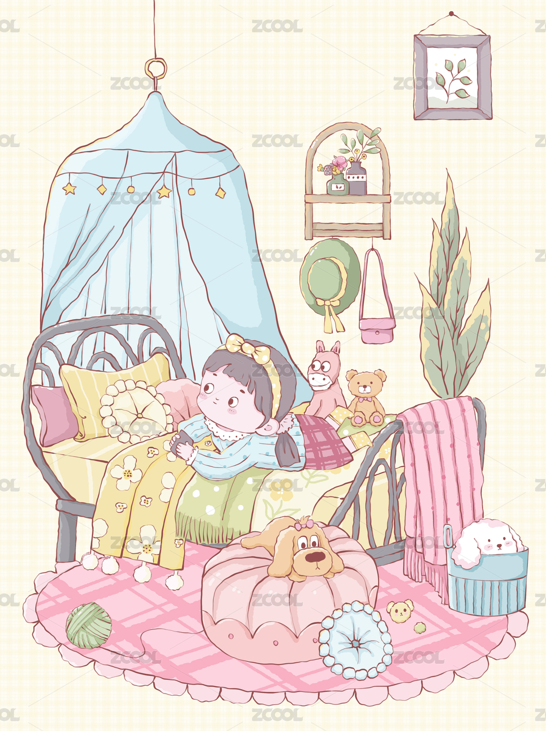儿童插画,室内场景,人物,固定电话,帽子,插画