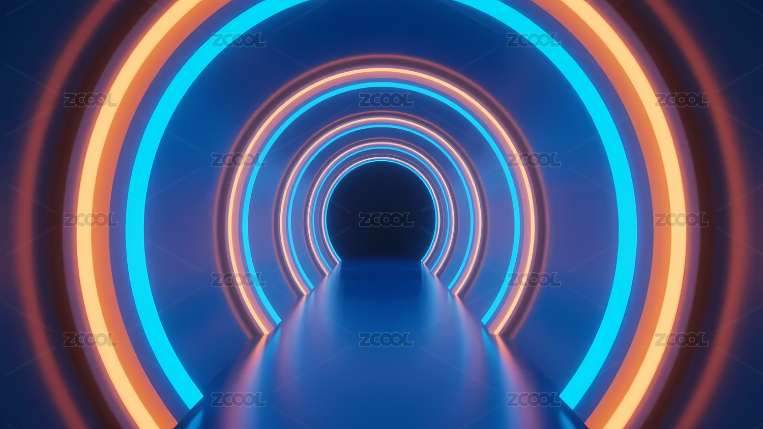 抽象技术3D发光隧道科幻空间概念场景插图
