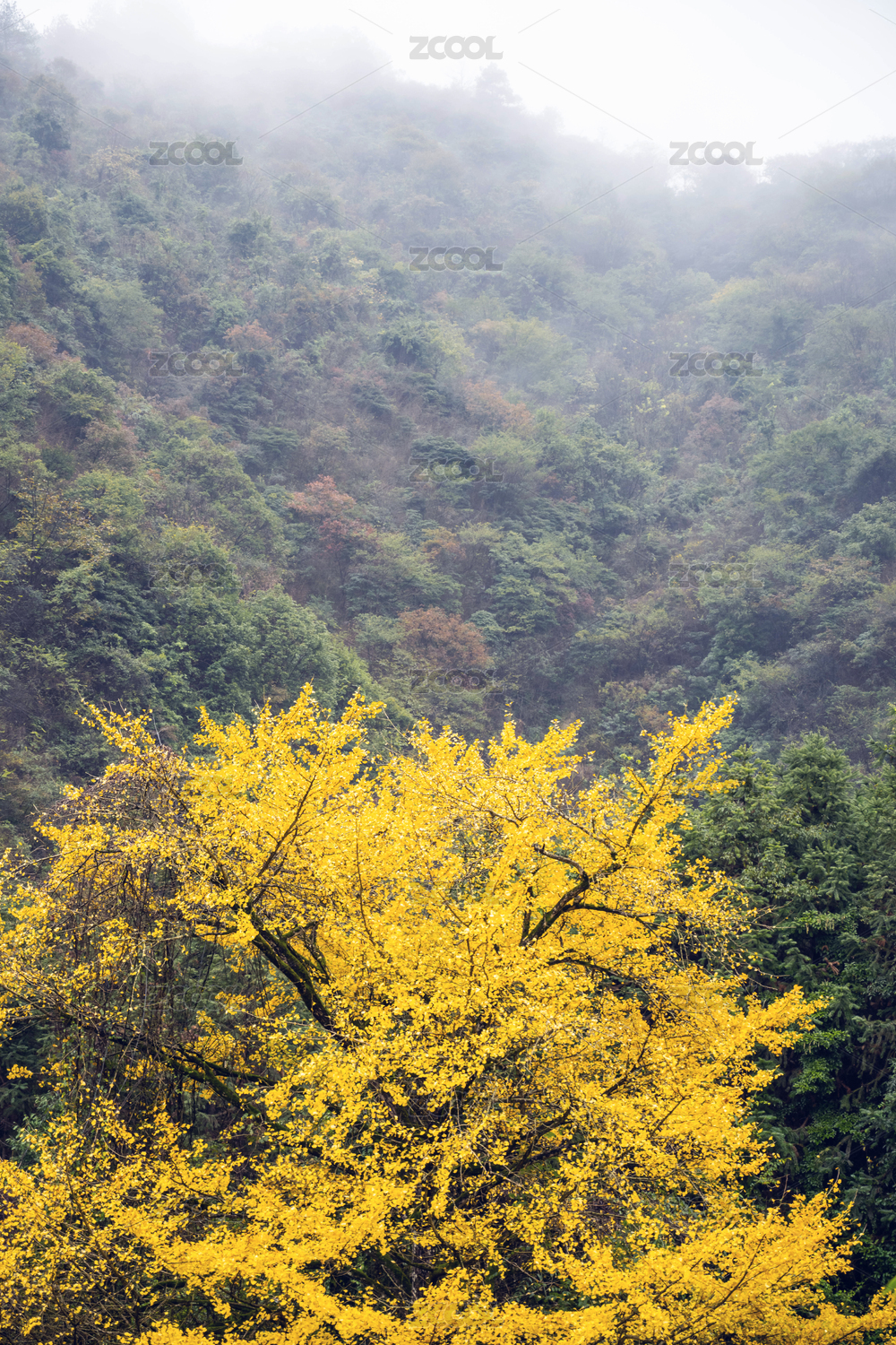 雨中的古银杏树