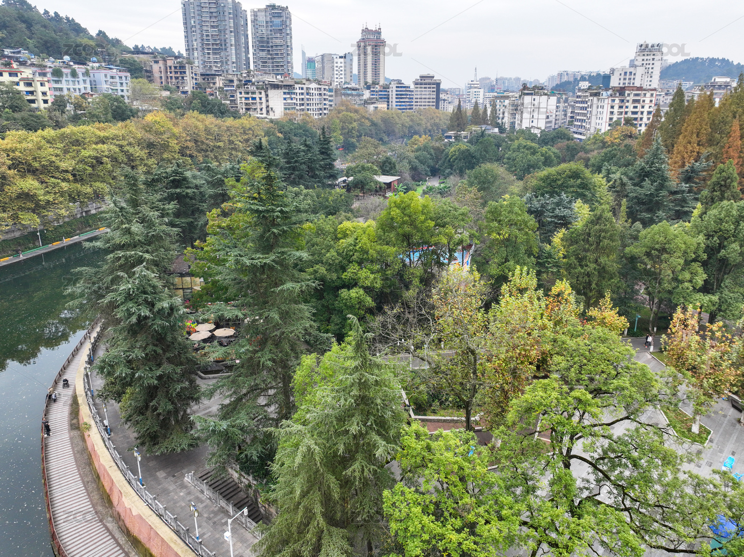 贵州省遵义市湘江河畔秋色浓郁,风景如画
