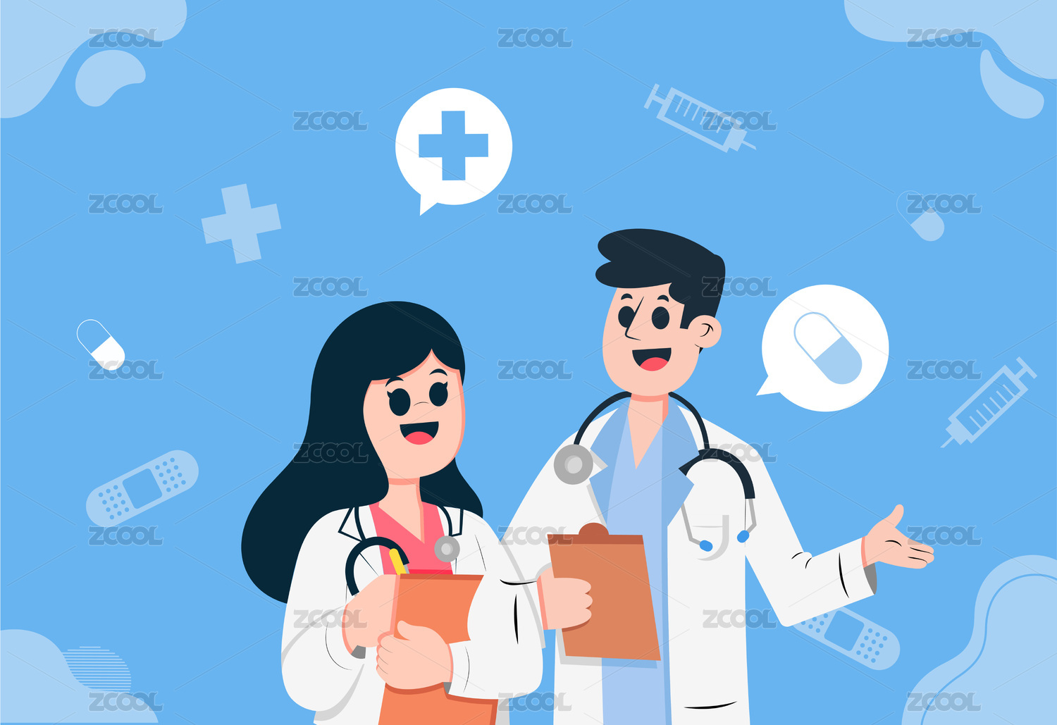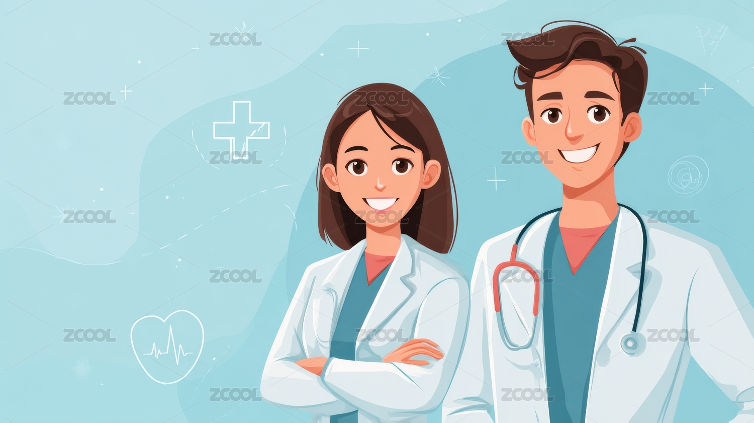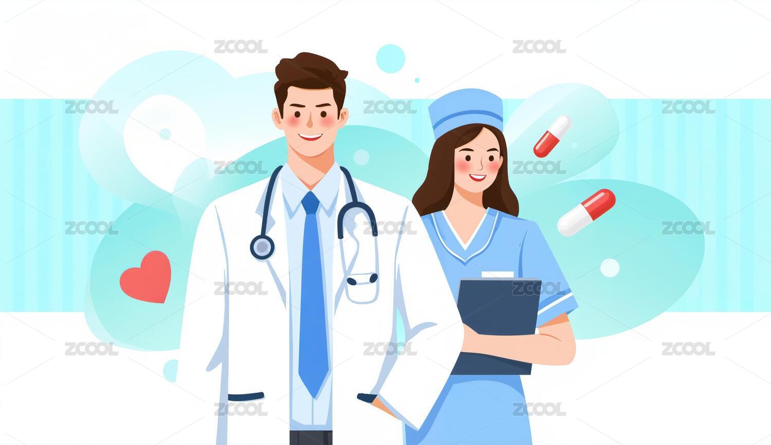 矢量插画男医生女医生