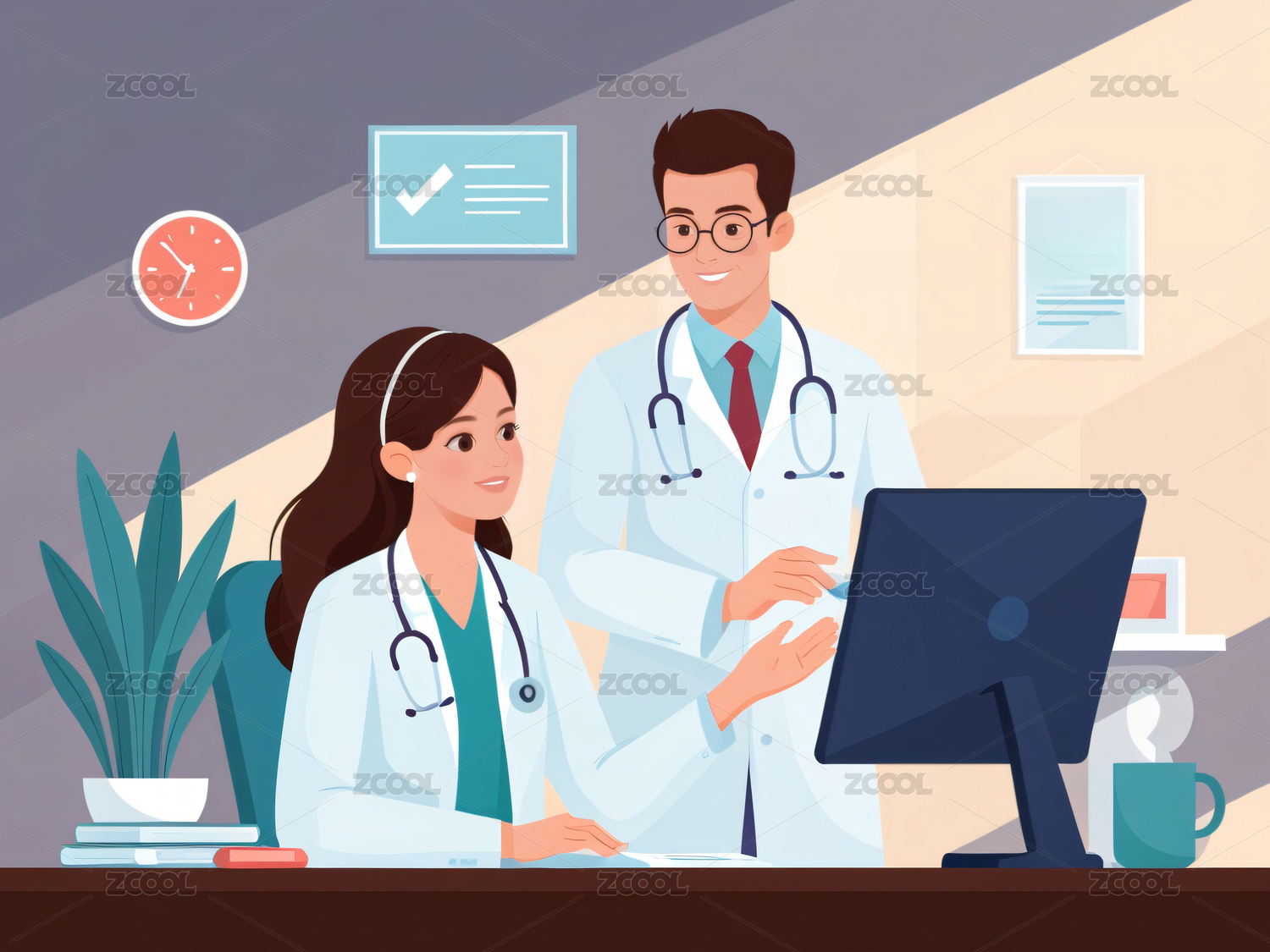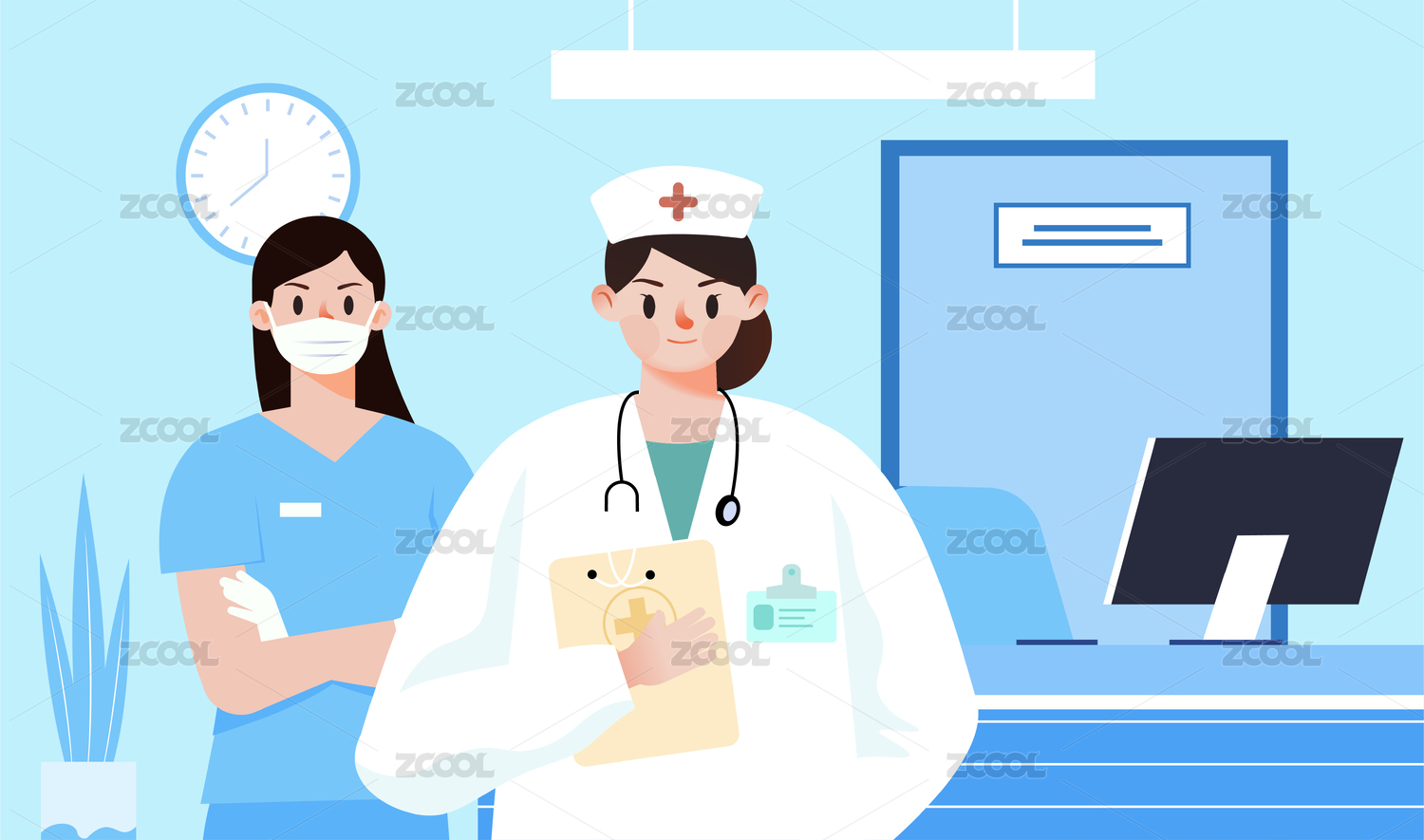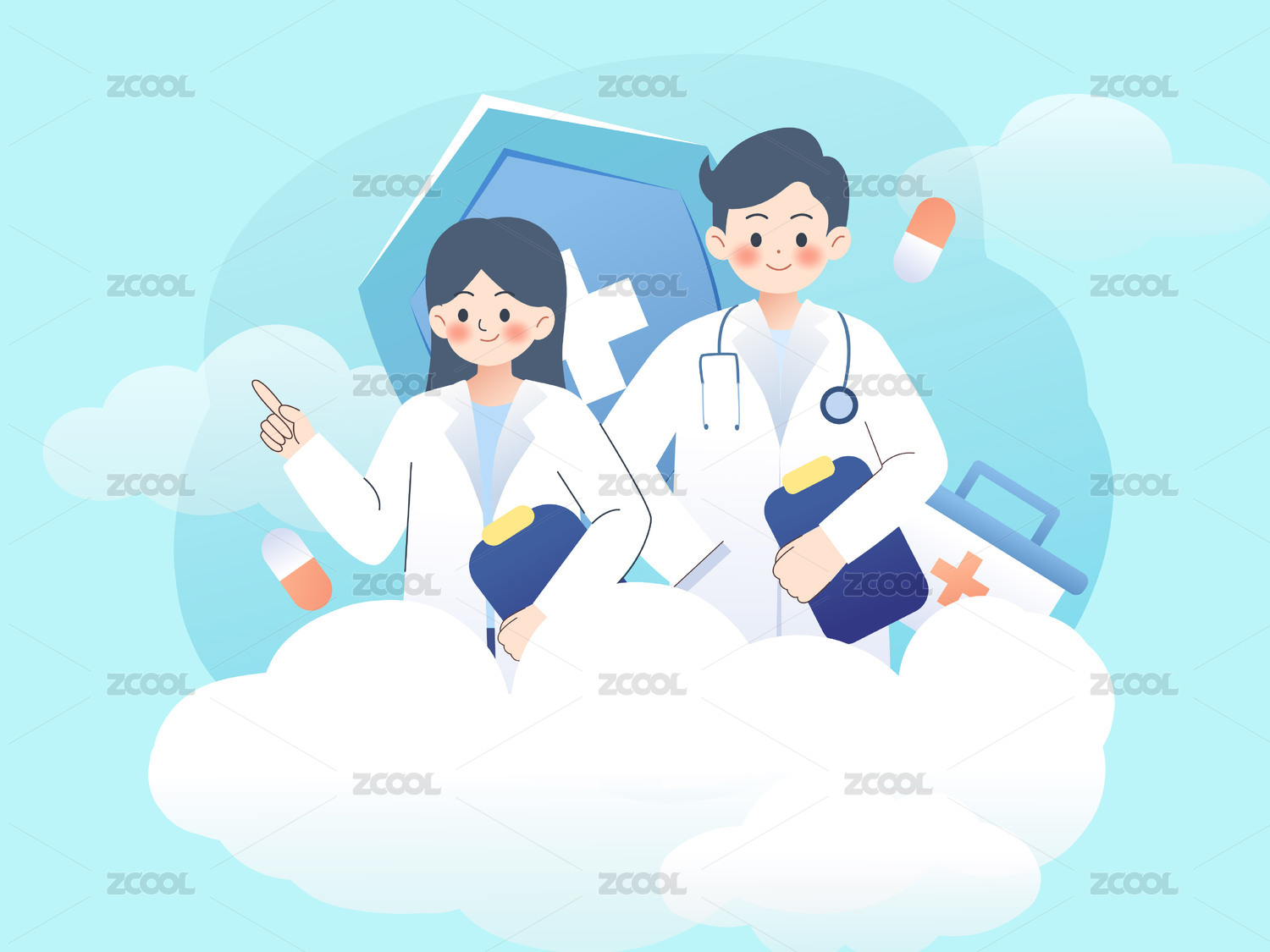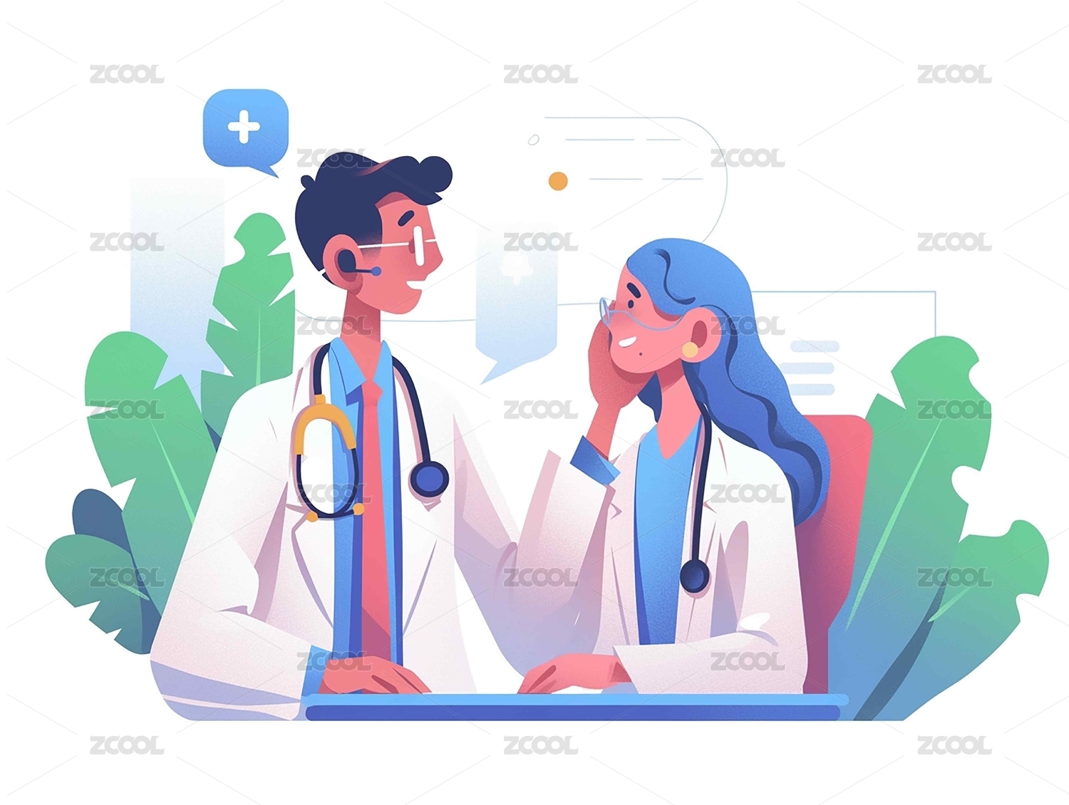矢量插画男医生女医生