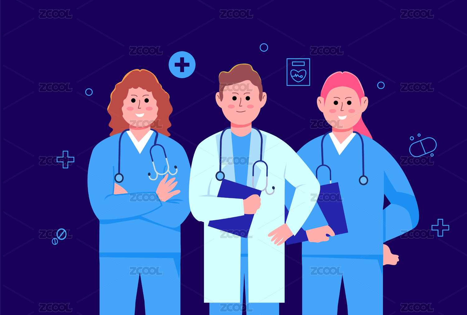 医务工作者形象矢量插画