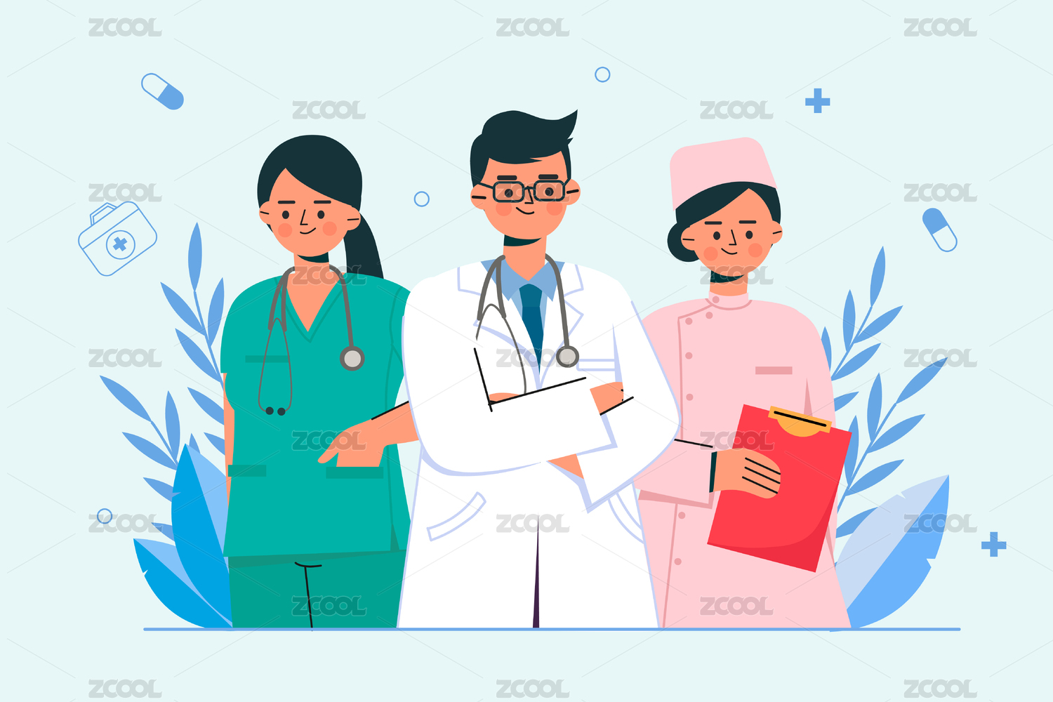 医疗人员医疗团队医生扁平插画