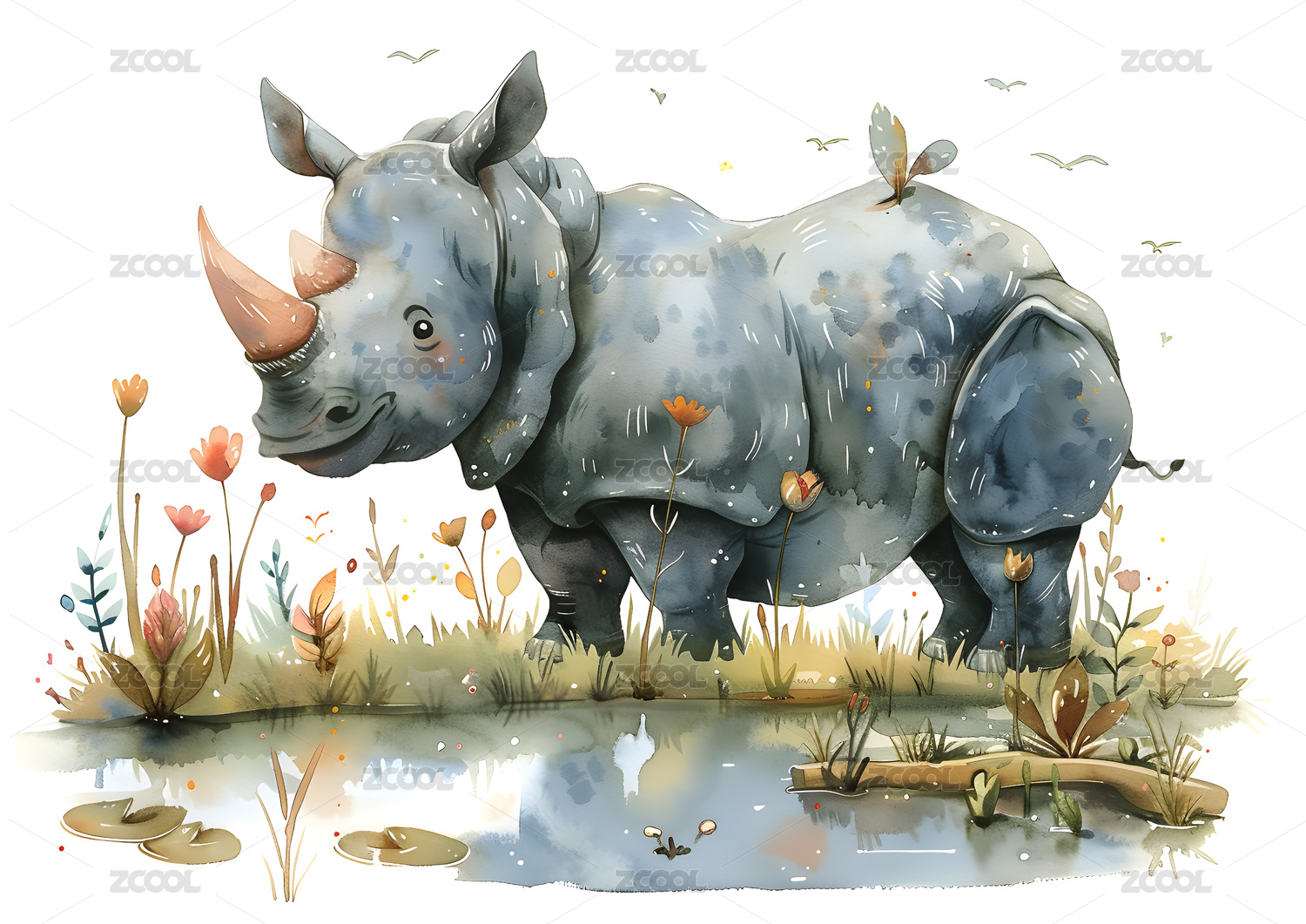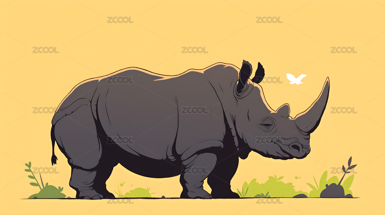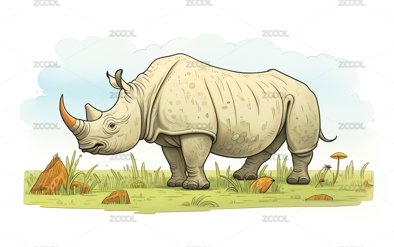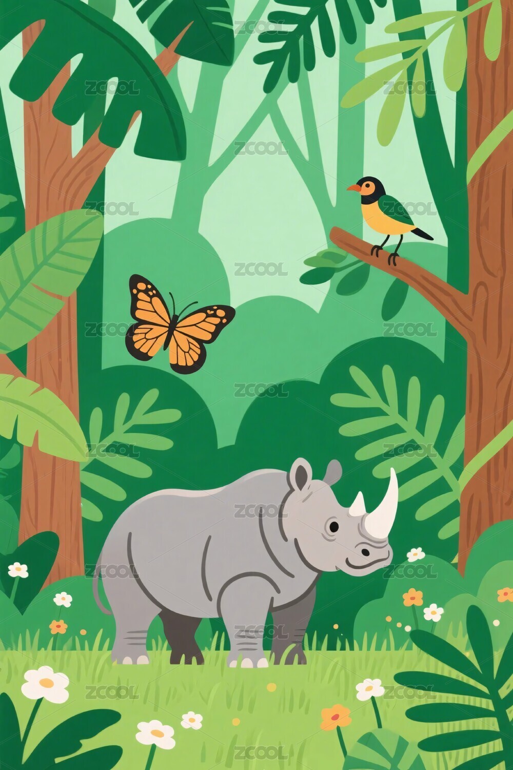 动物,户外,自然,卡通,插画,森林,植物,犀牛
