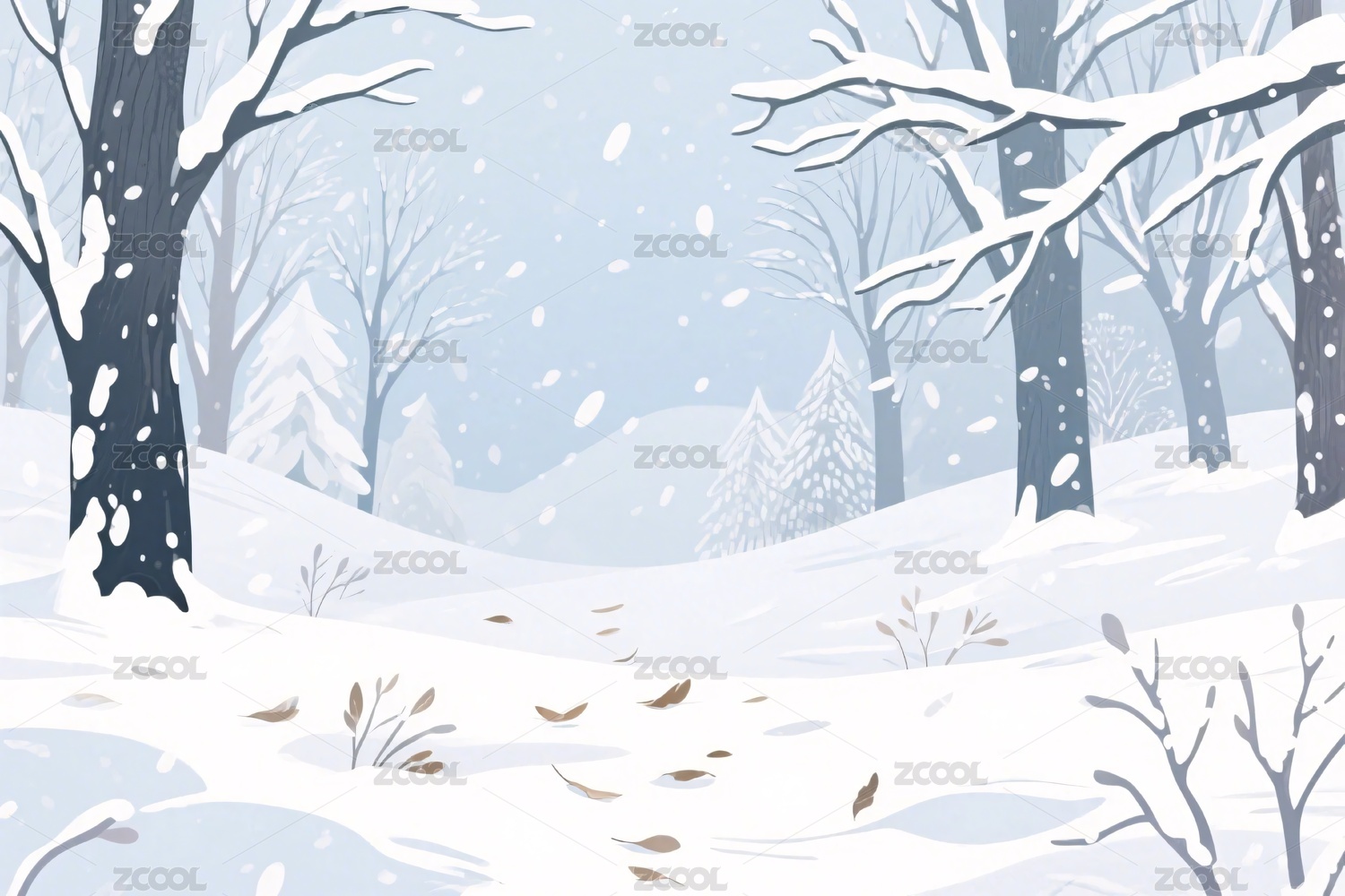 冬日雪景彩叶插画
