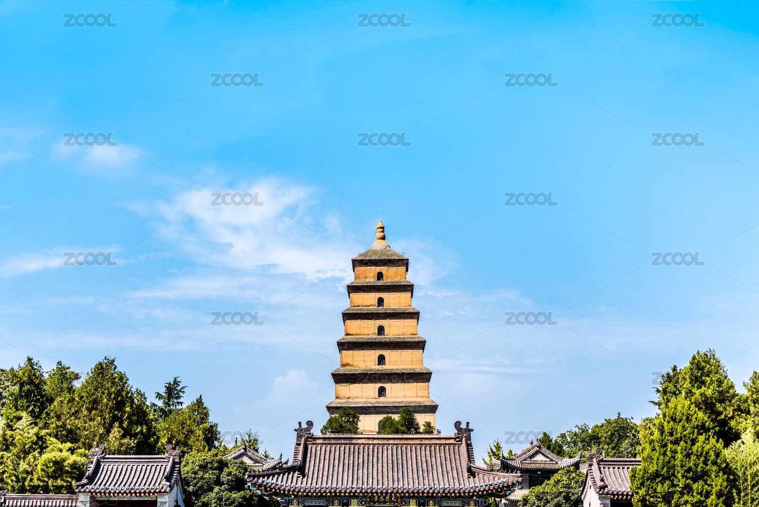 陕西西安晴朗天气的大慈恩寺大雁塔