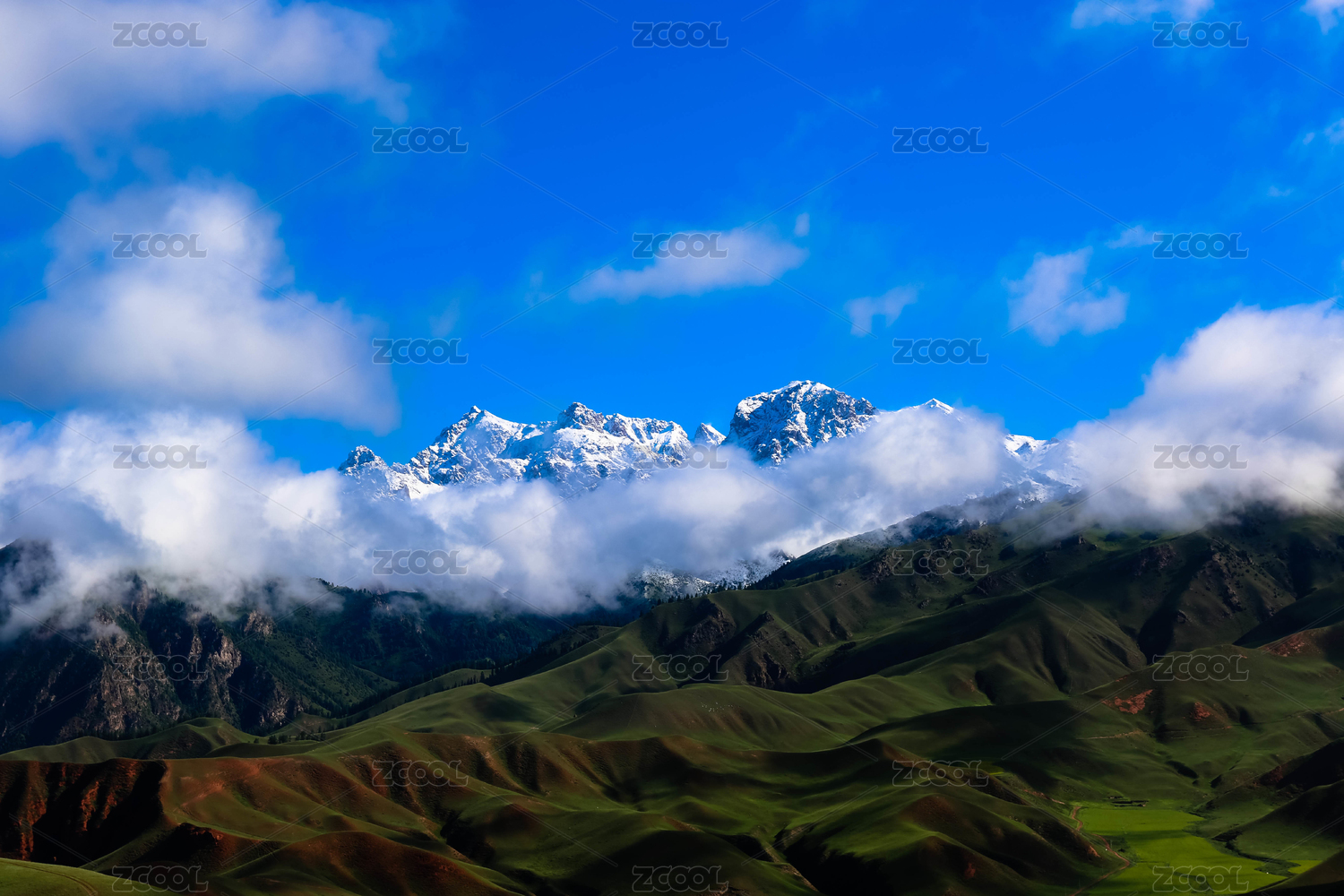 中国青海省海北藏族自治州祁连县卓尔山风景区远处雪山风光