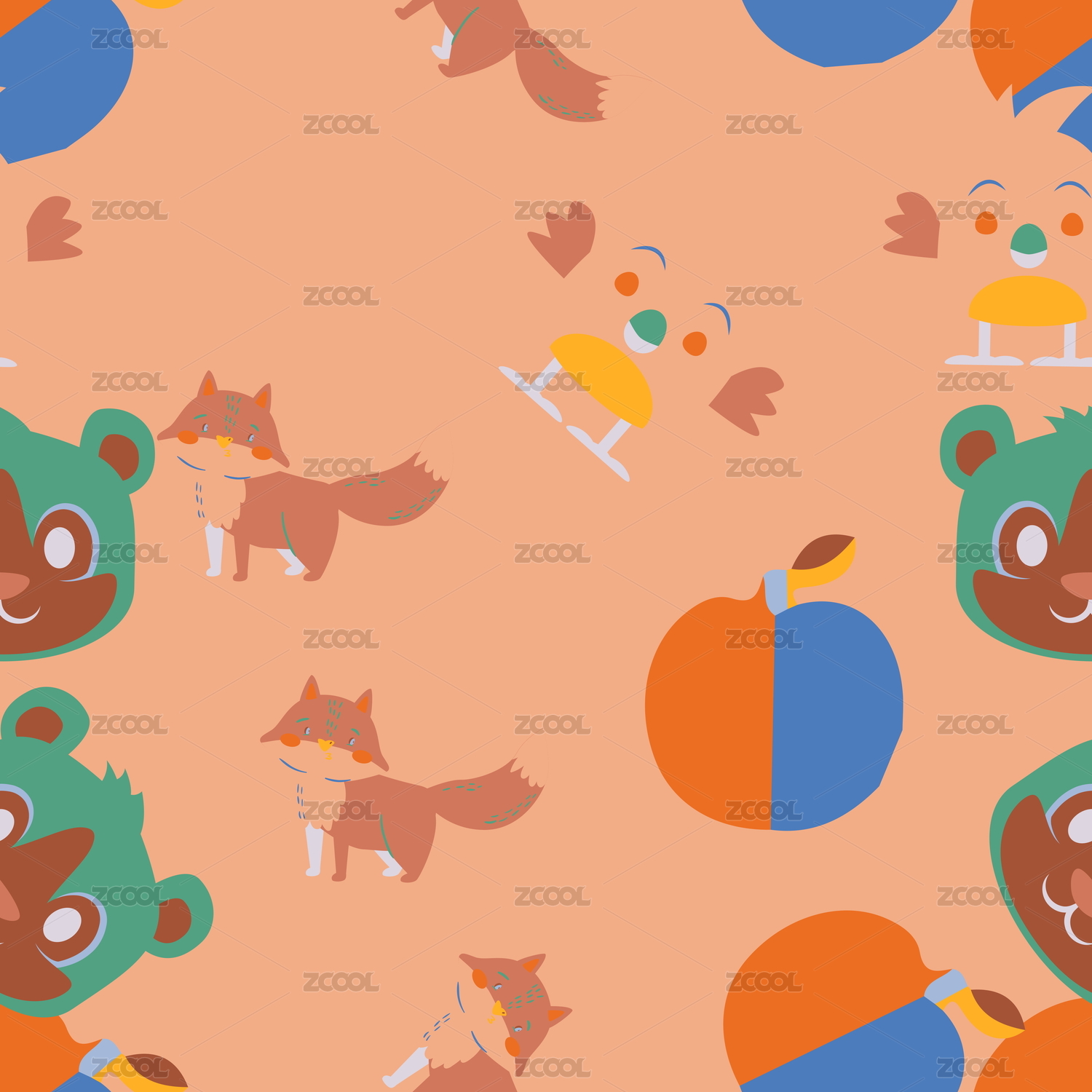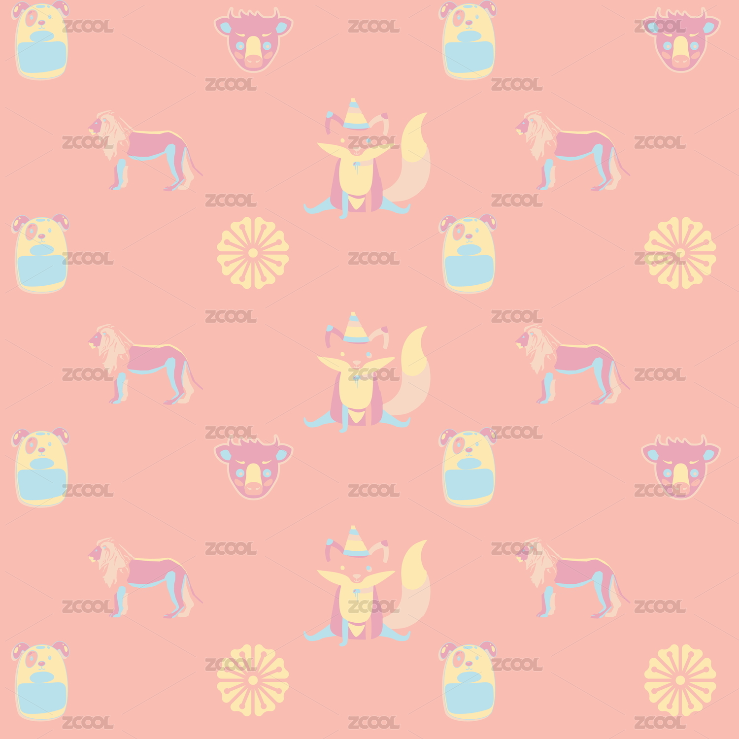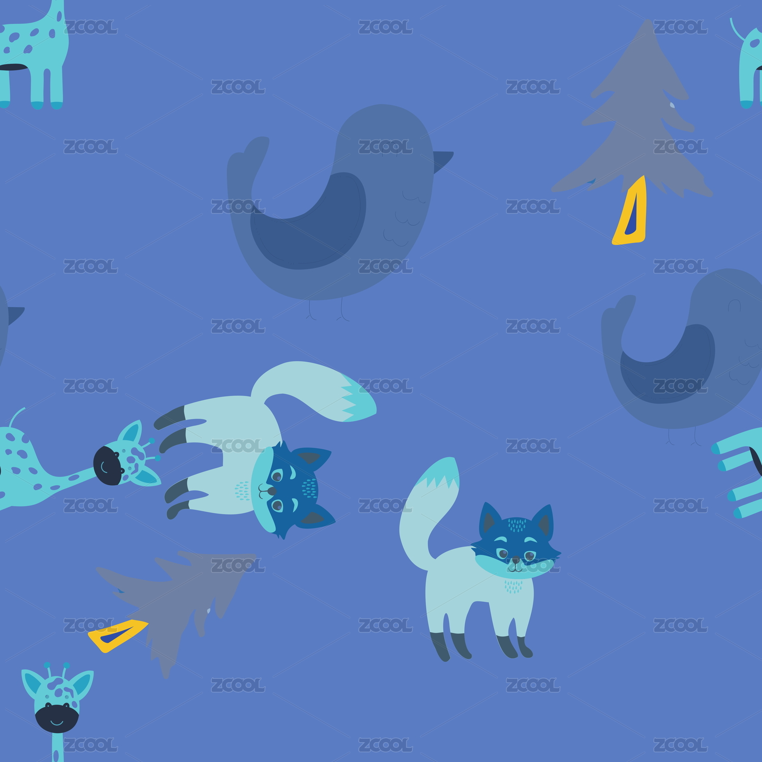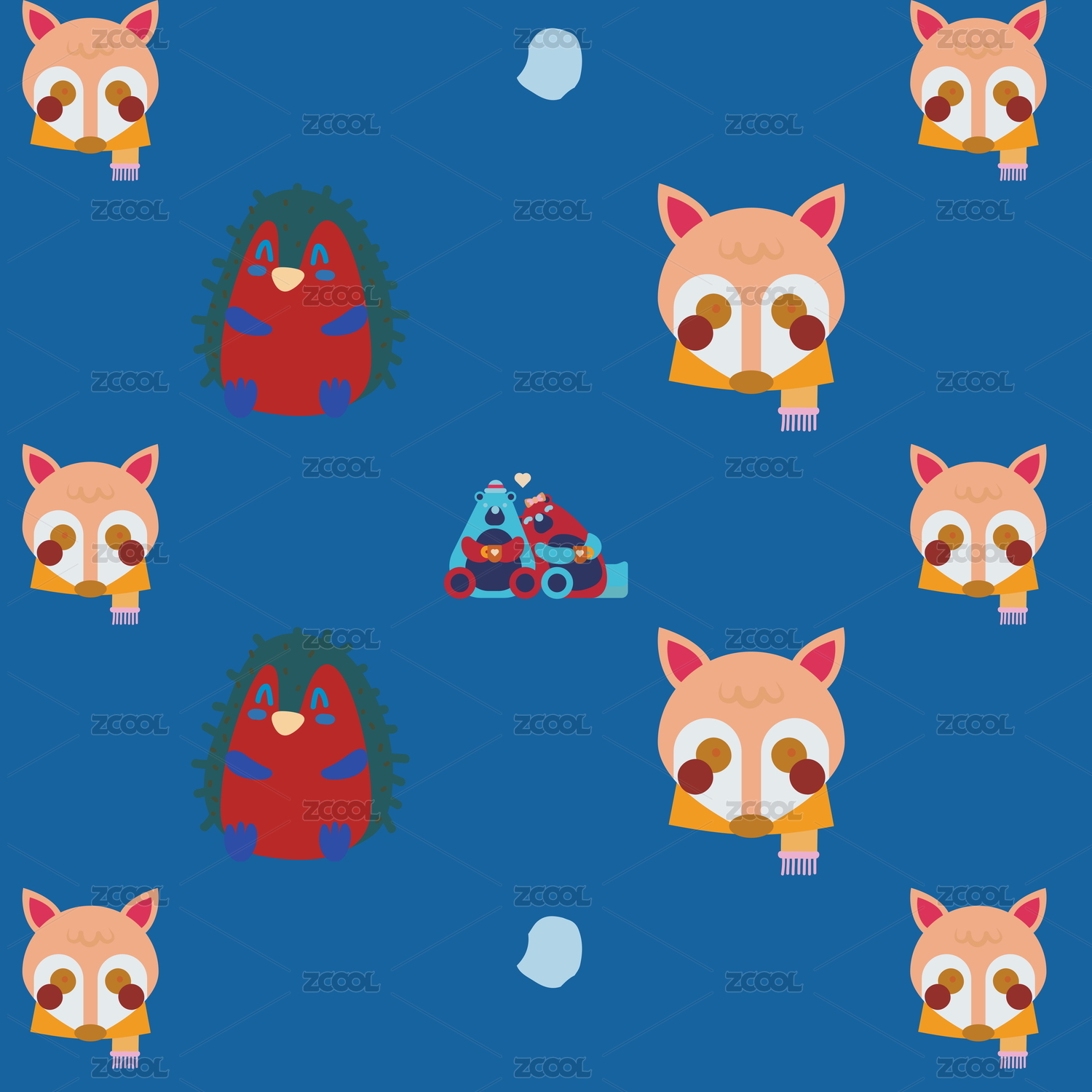 卡通动物无缝插画