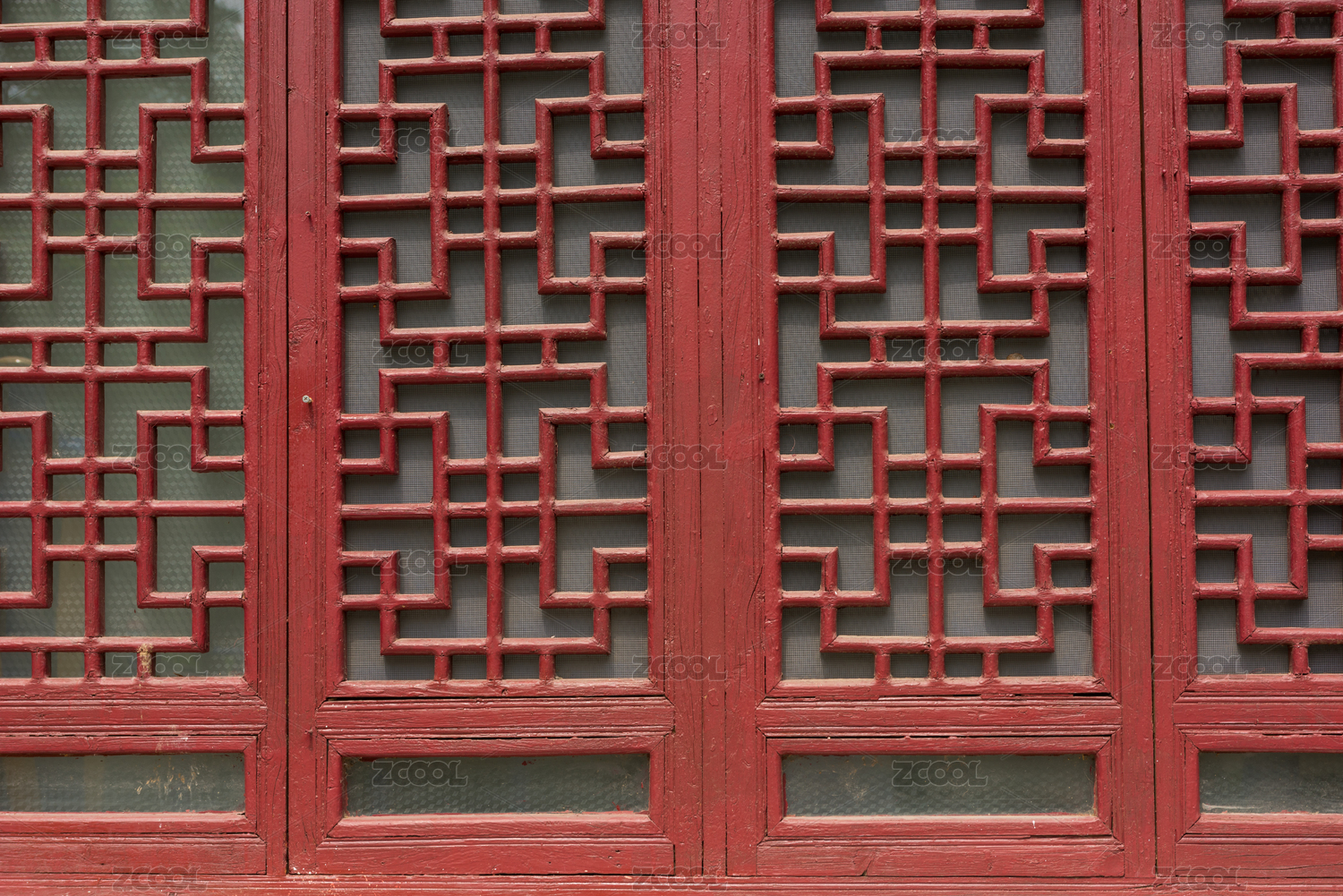 中国传统红色木头门窗