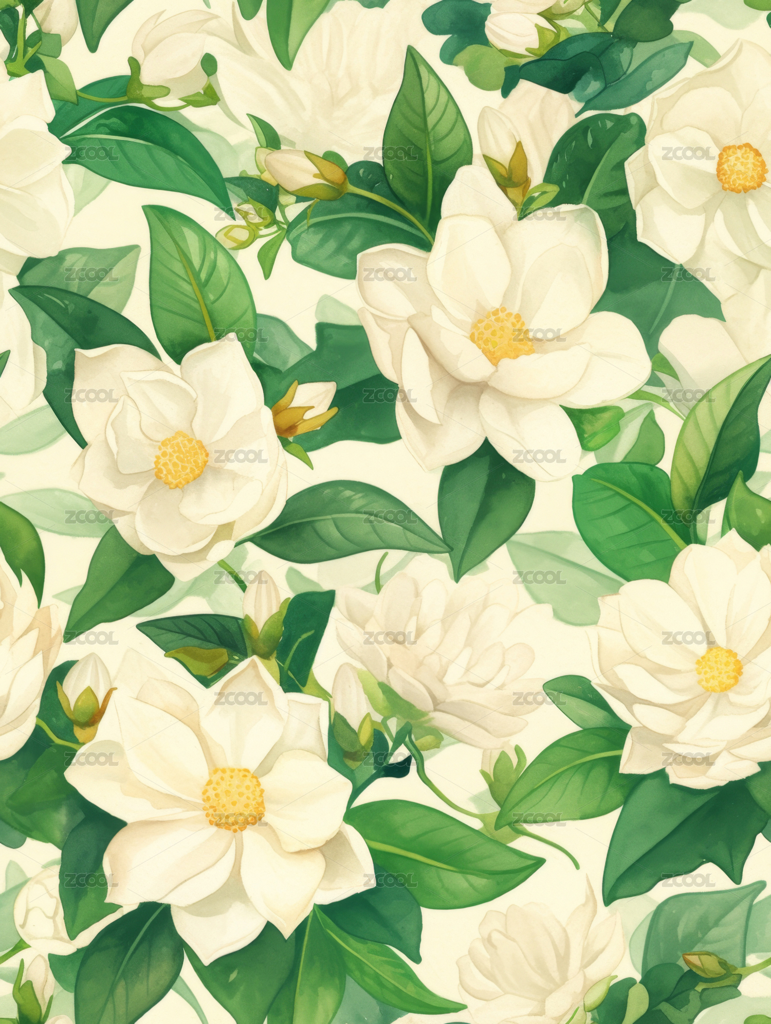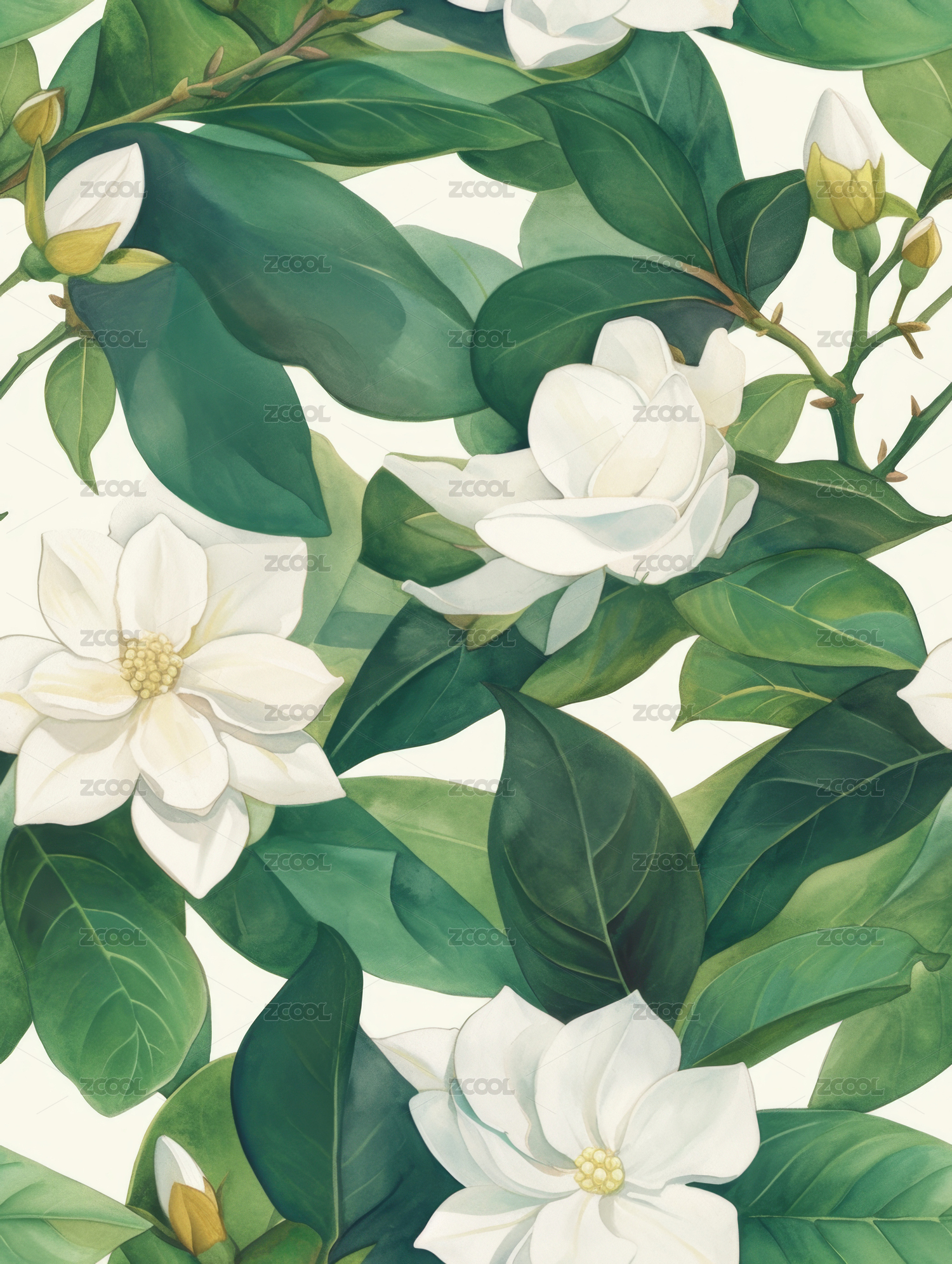 水彩,山玉兰,花朵,白色,绿色,叶子,植物,绘画,艺术,插画
