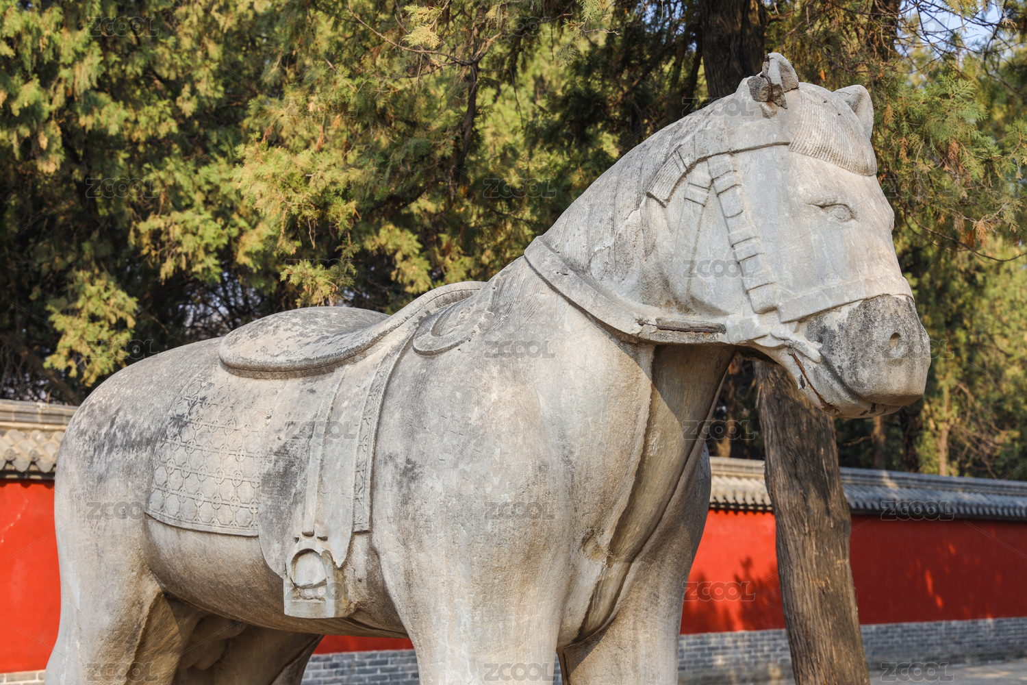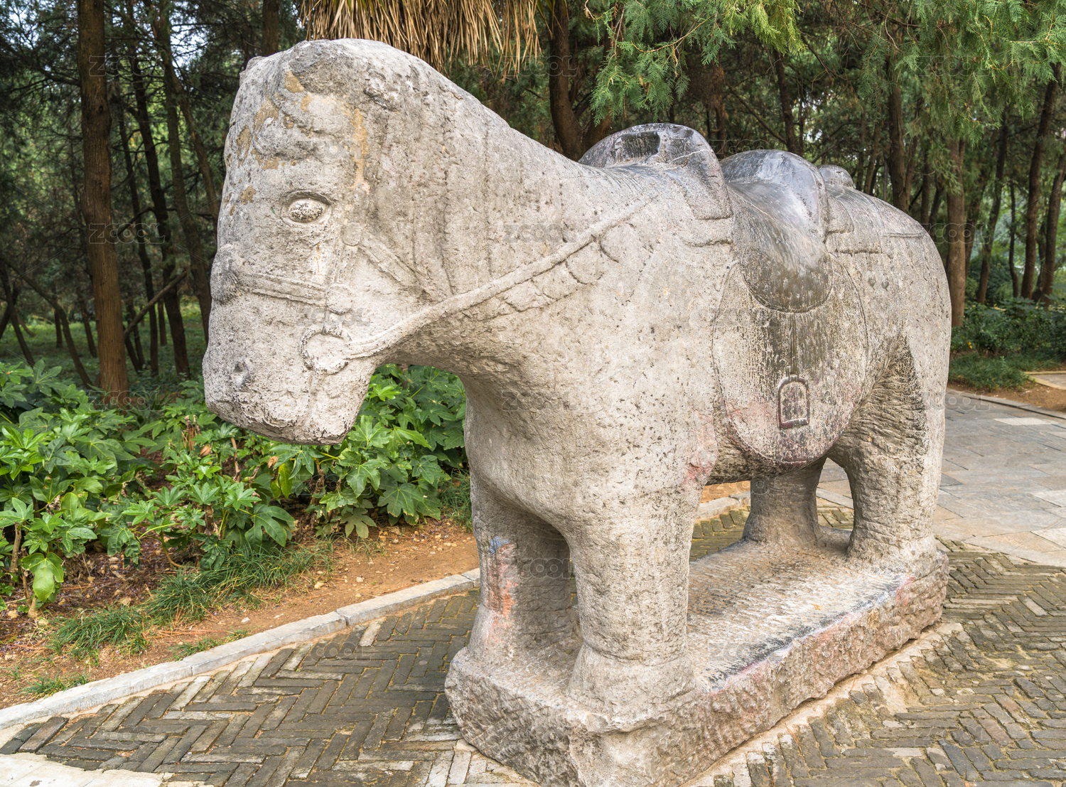 河南南阳卧龙岗武侯祠明清时期石雕骏马全景