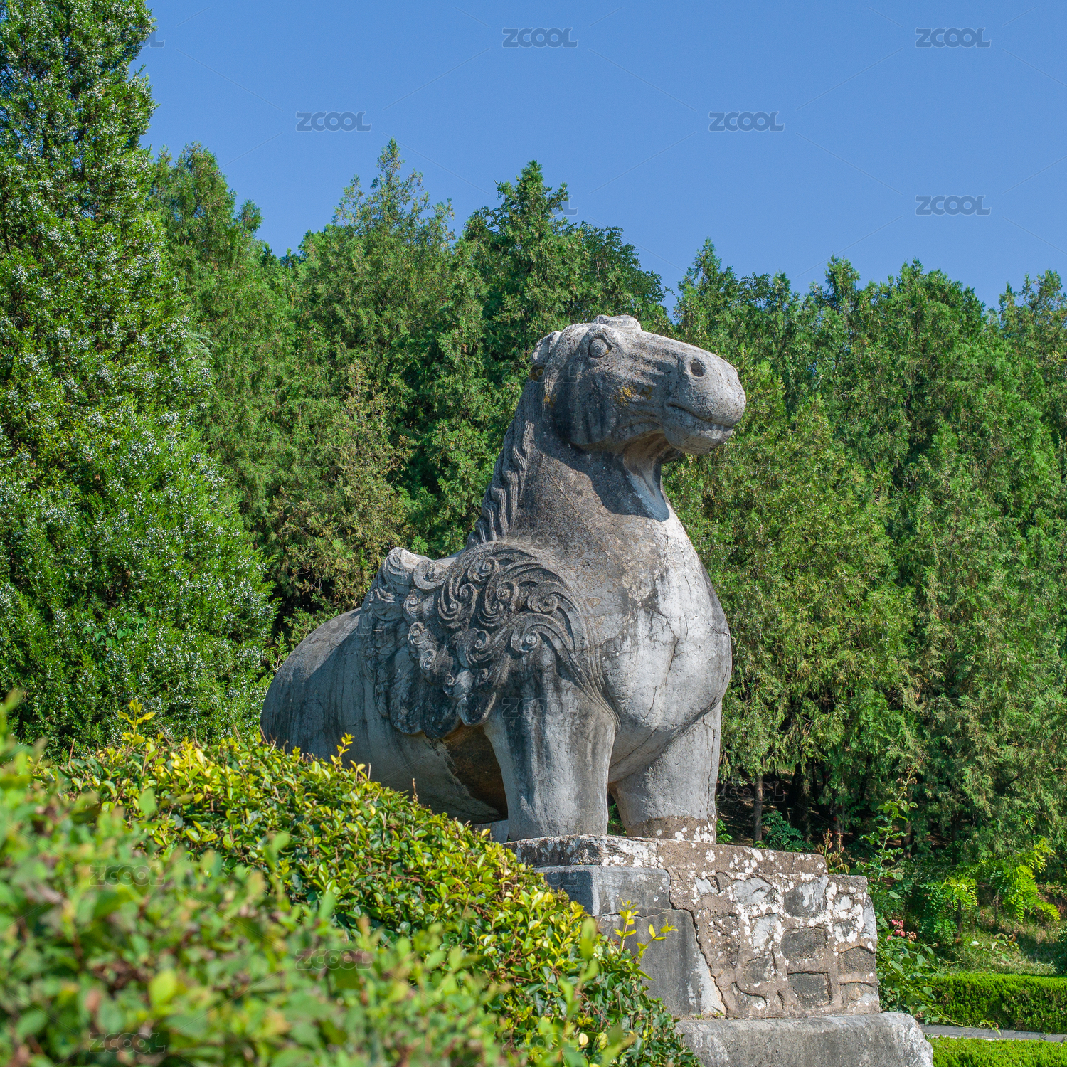 河南南阳卧龙岗武侯祠明清时期石雕卧马全景