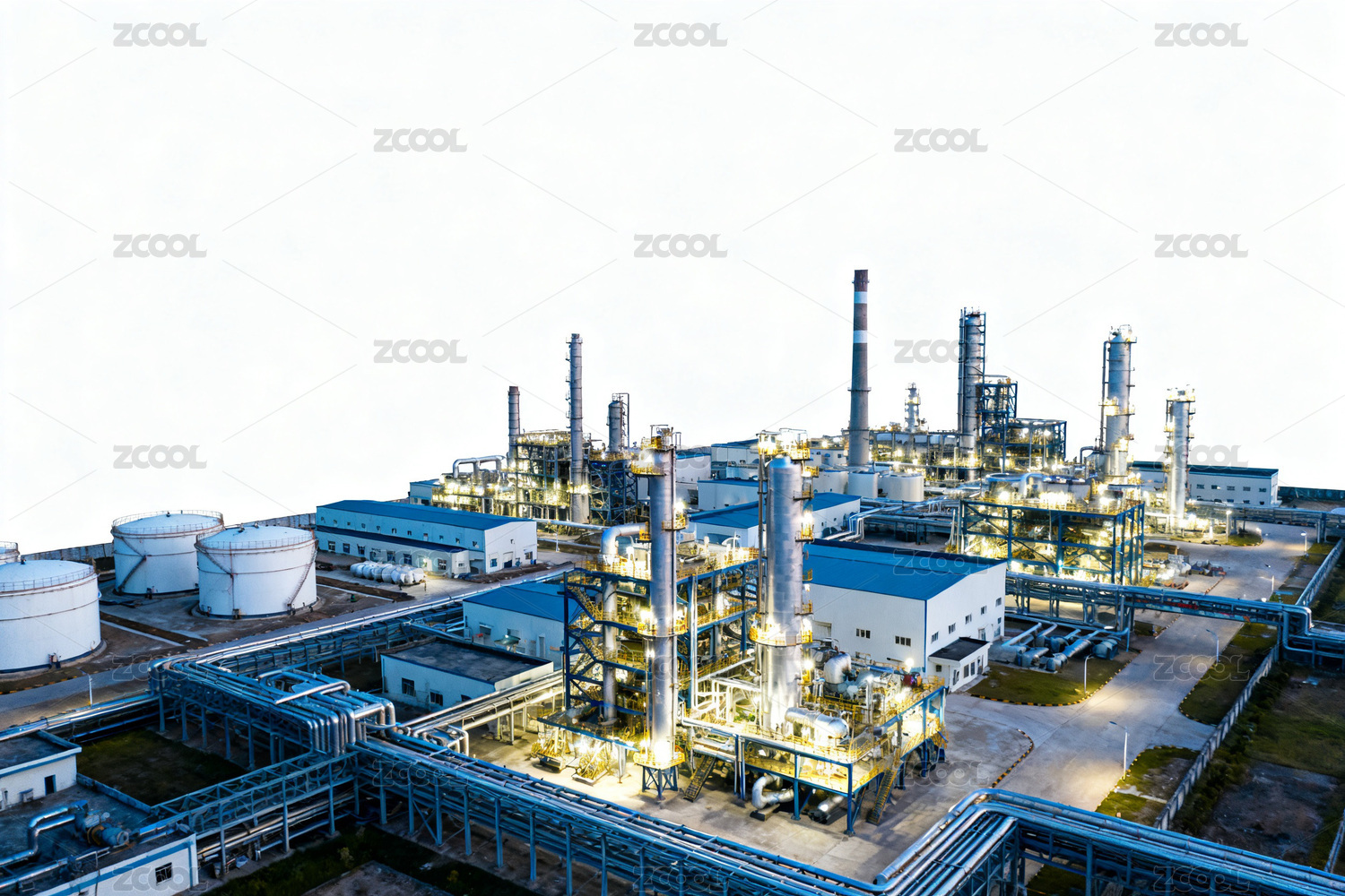 工业厂区夜景航拍图