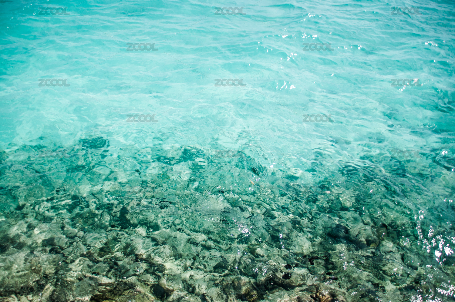 海水浅滩处透明的海水下五彩斑斓的礁石