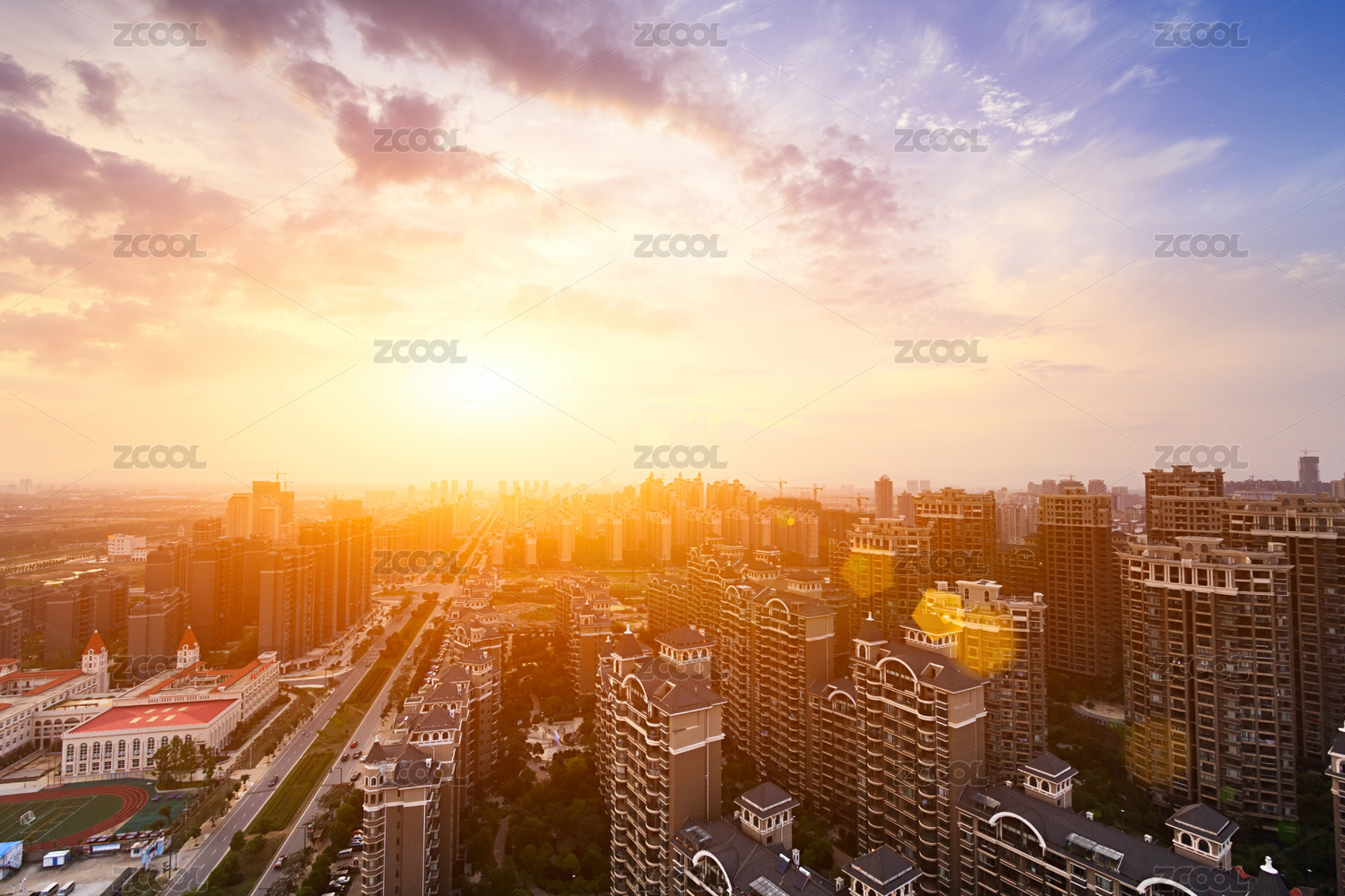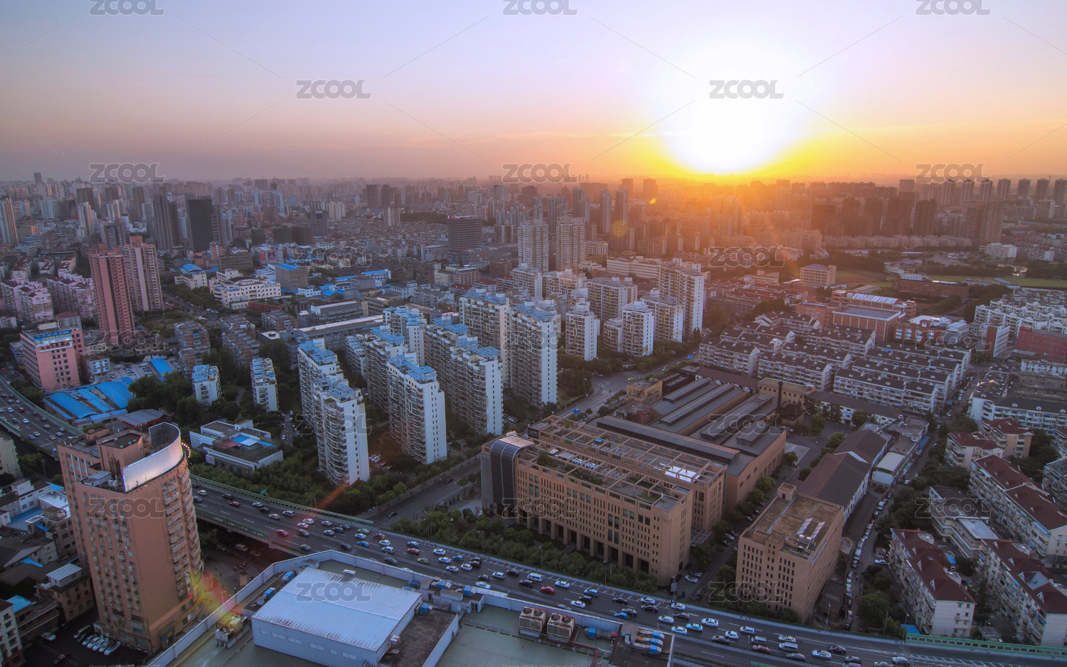 浙江省杭州拱墅区朝晖地区城市夕阳风光