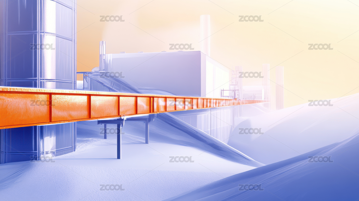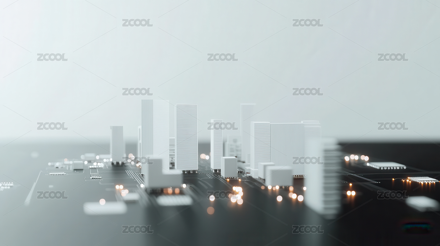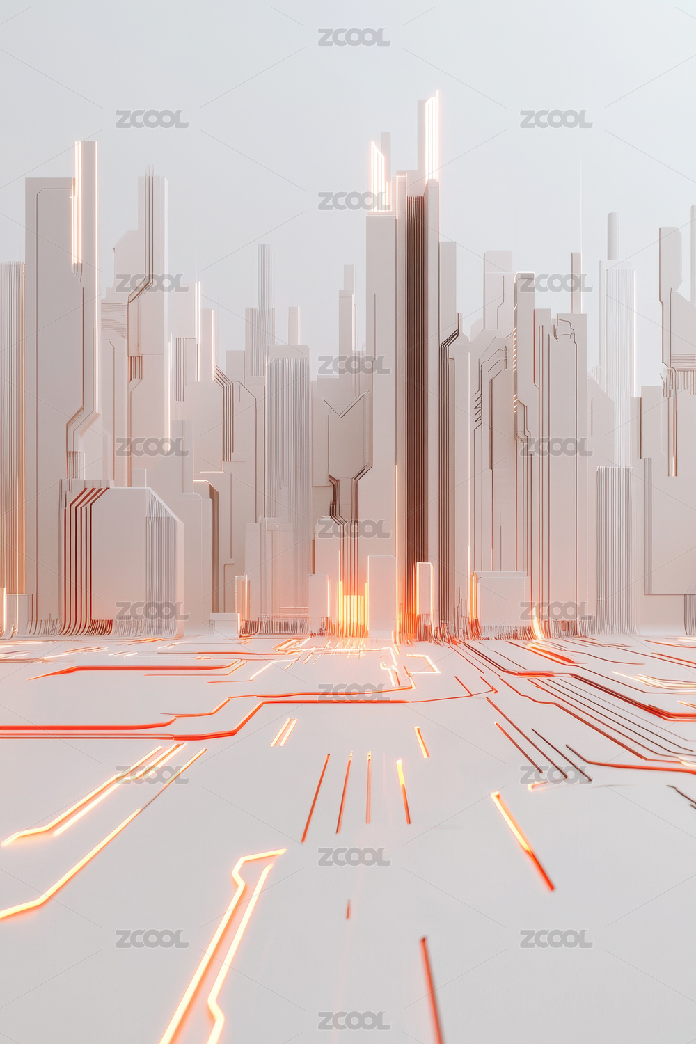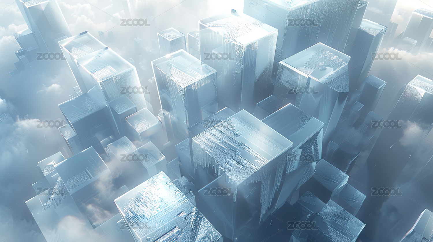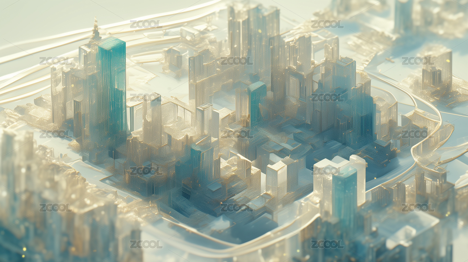 高耸现代城市绿色建筑晶体模型3D卡通插画