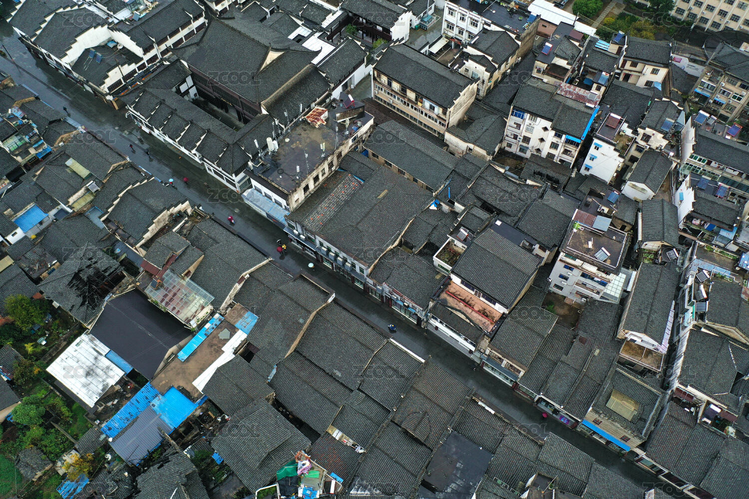 中国广西贺州黄姚古镇房屋建筑俯视航拍