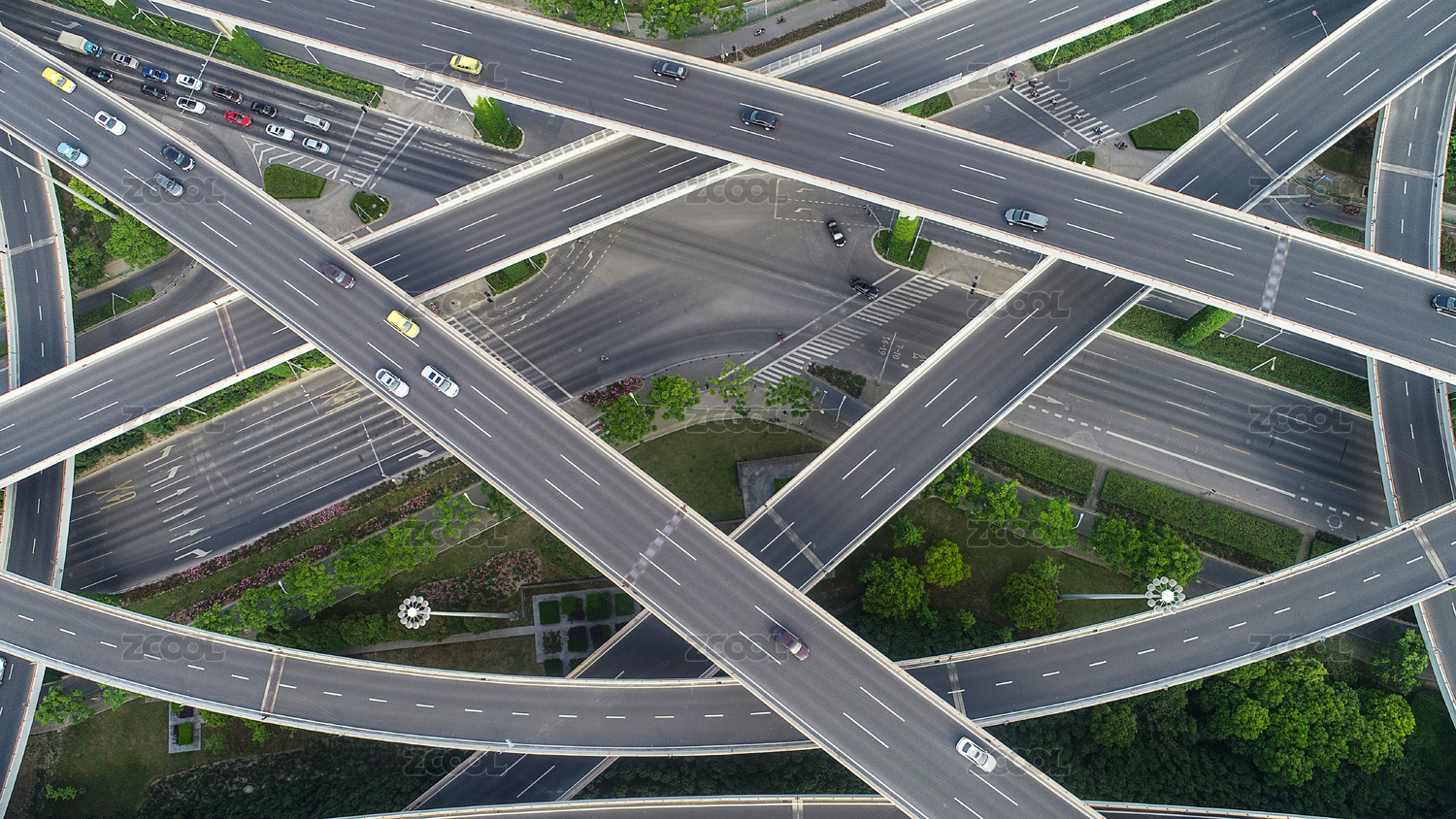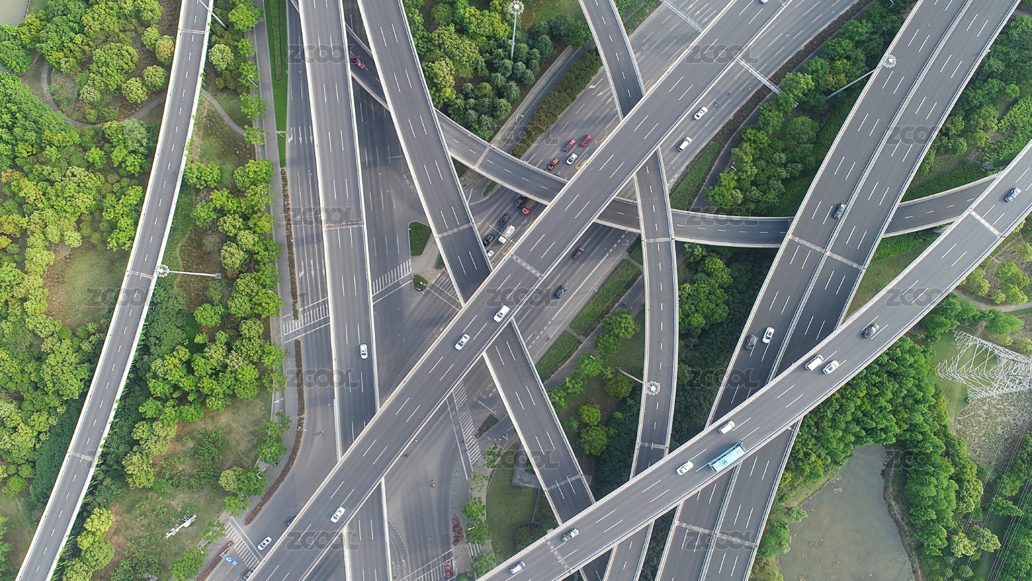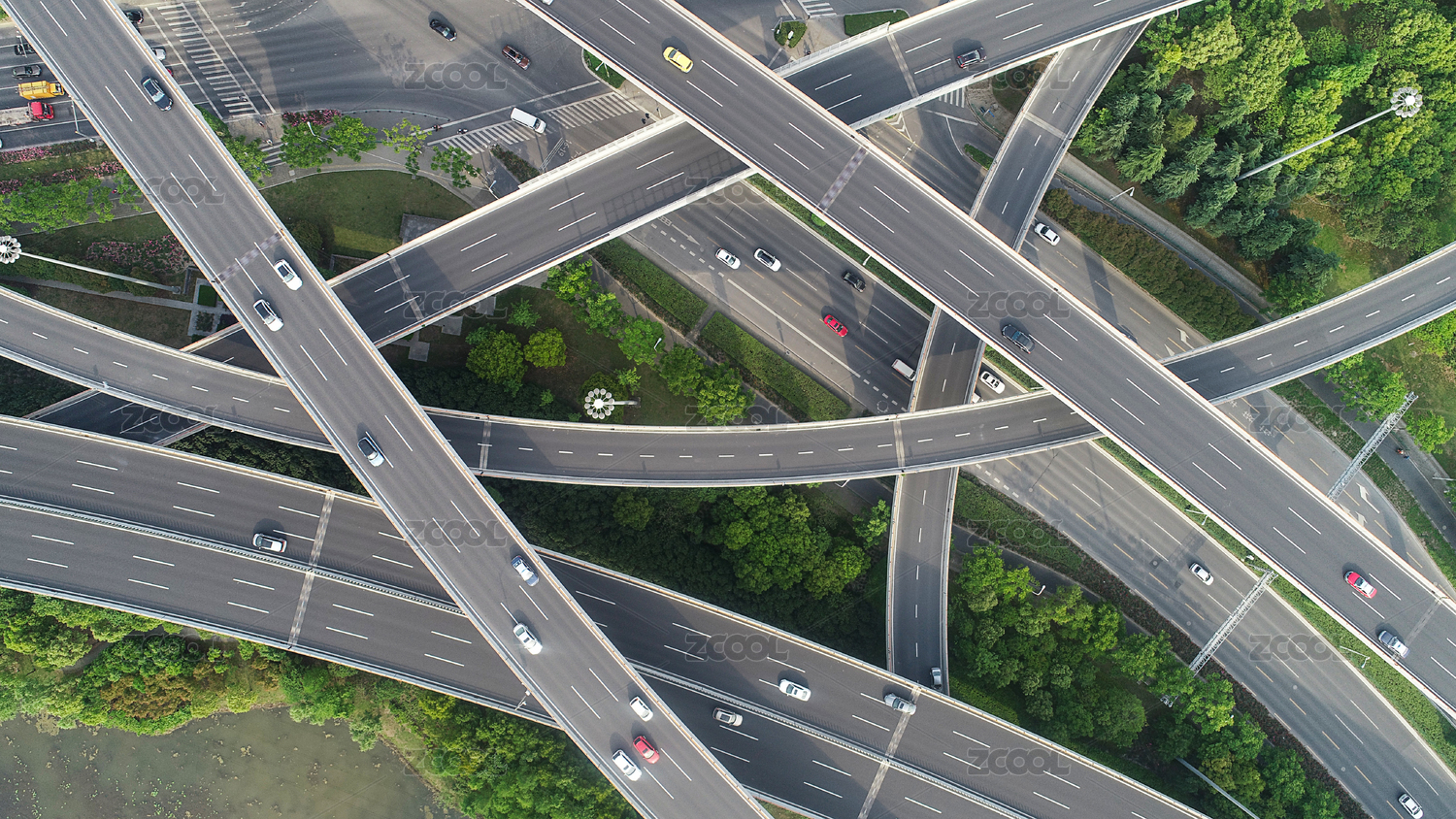 中国浙江杭州滨江彩虹立交桥车流航拍