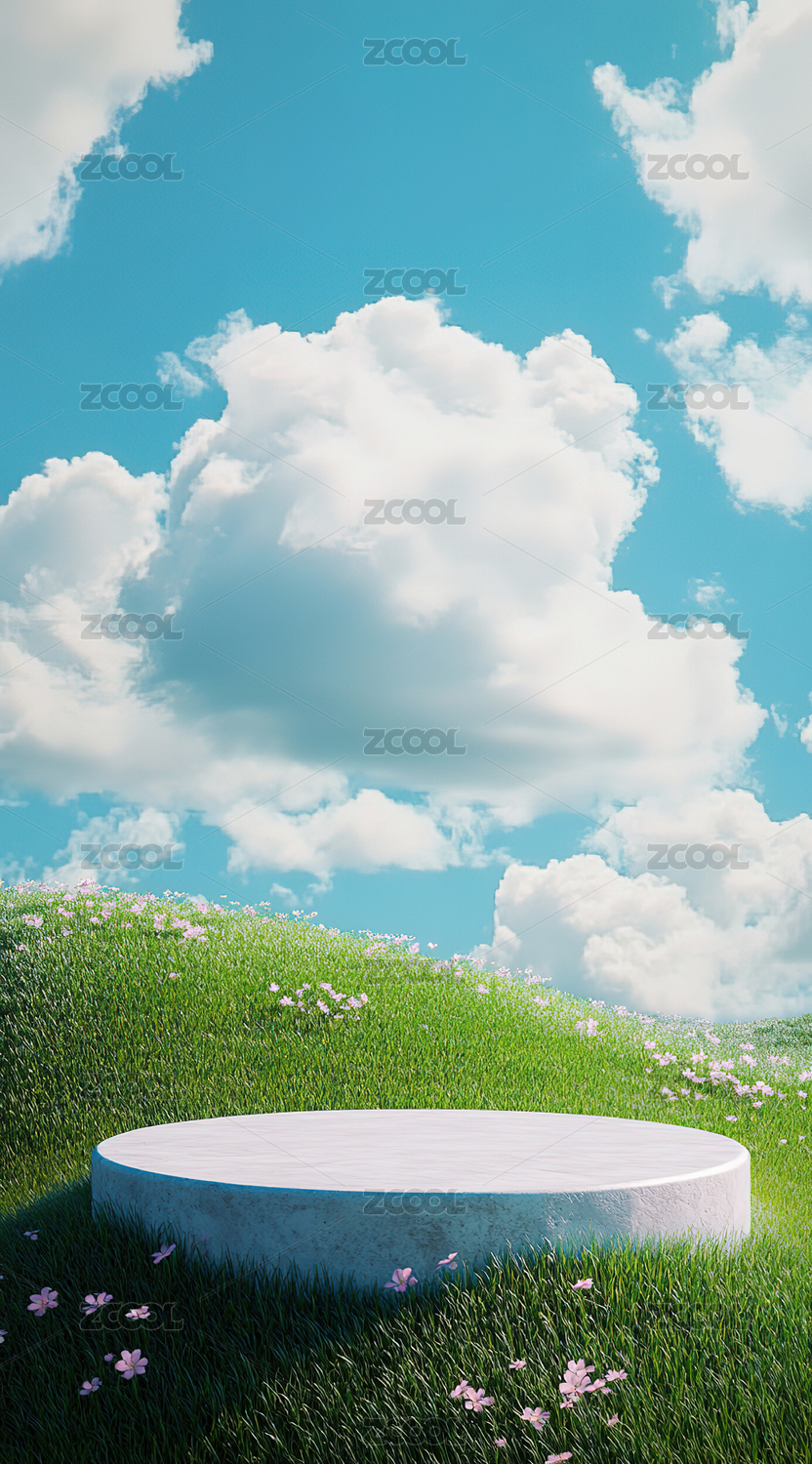 产品展台,展台,展示舞台,平台,奖台,电商,草,草坪,植物,天空