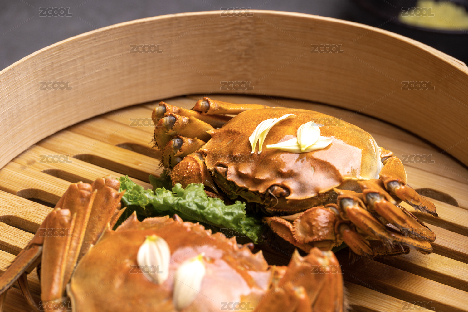 蒸笼里的熟大闸蟹螃蟹