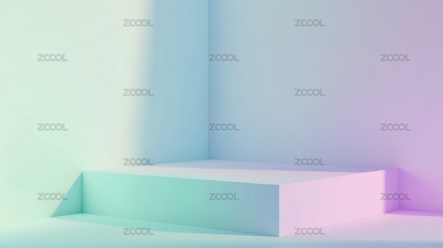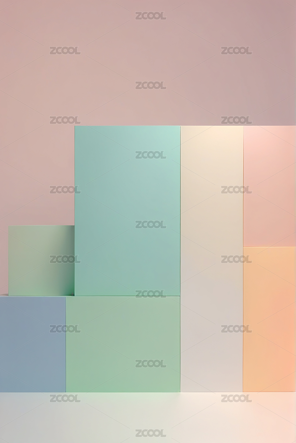 梦幻粉蓝渐变色展台底座电商3D效果图