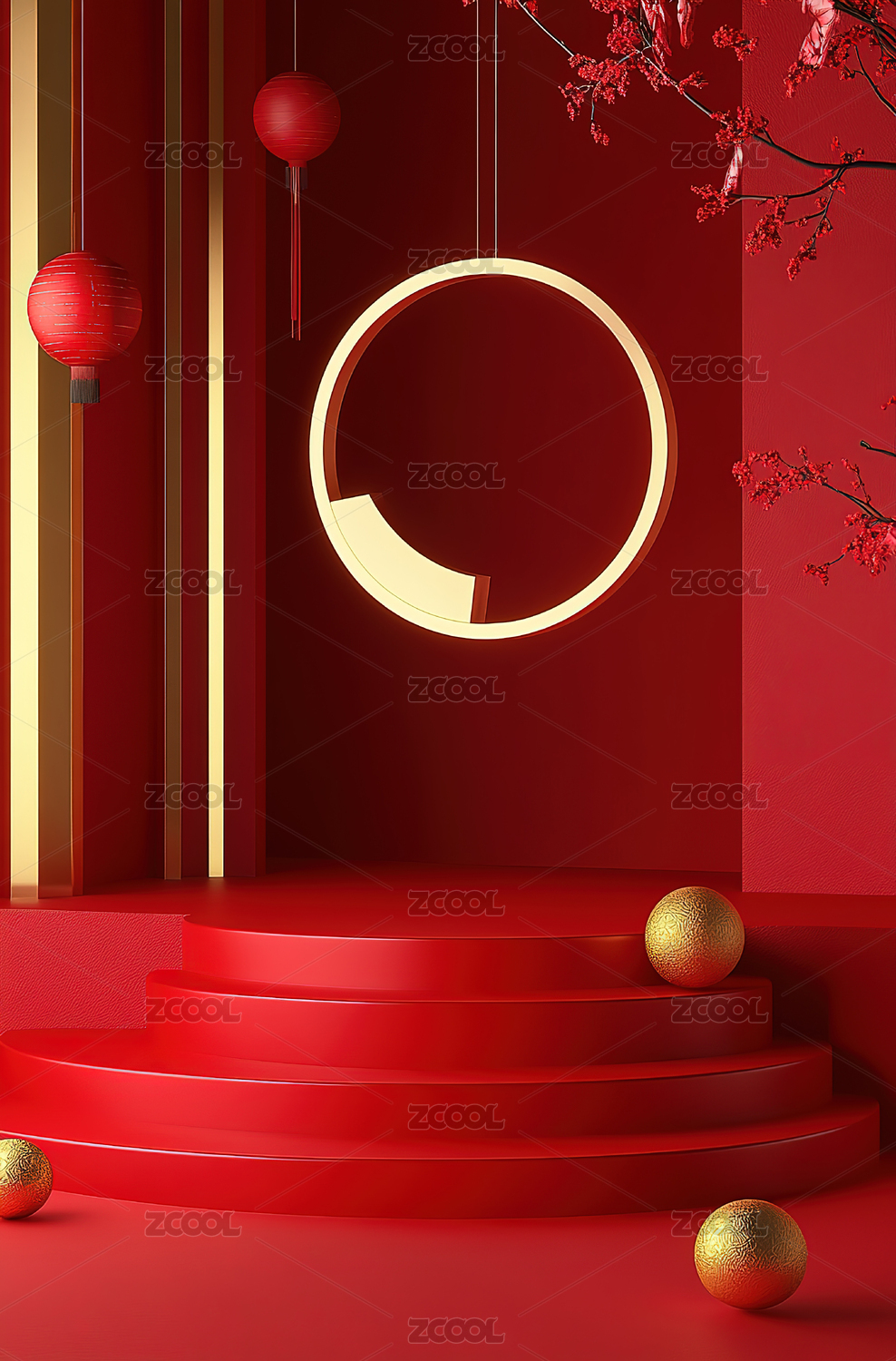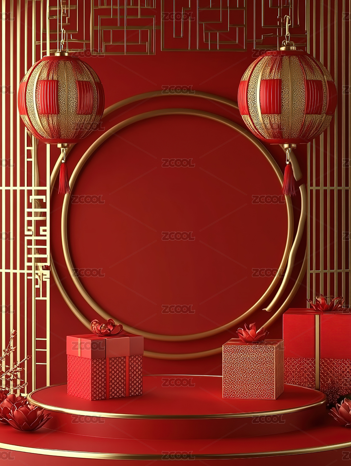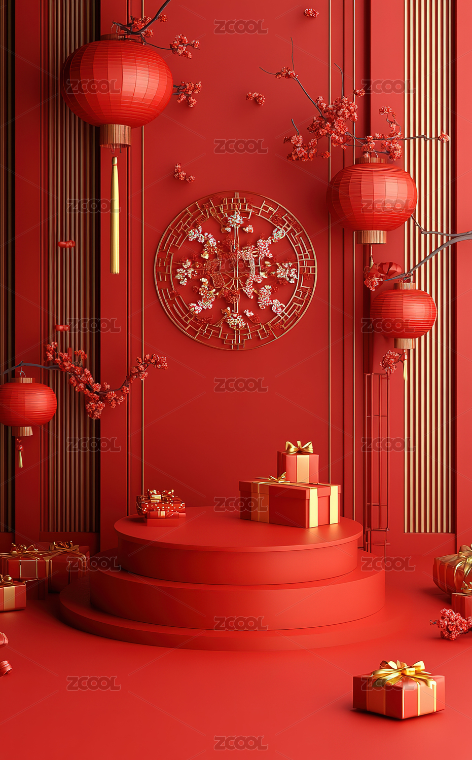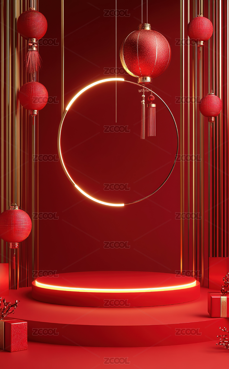 无人,红色,装饰,式样,中国文化,庆祝,圆形,节日,春节,三维图形