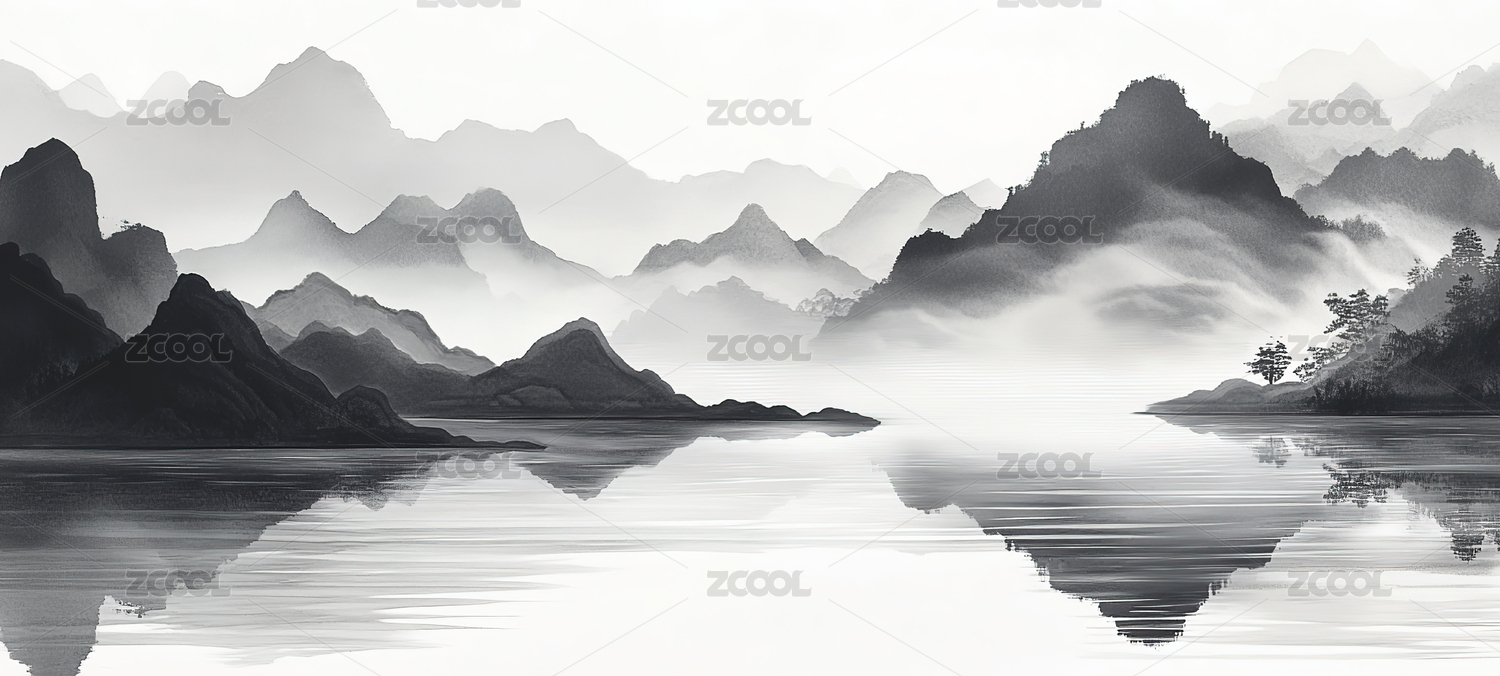 抽象意境水墨山水装饰画中国风写意山水背景
