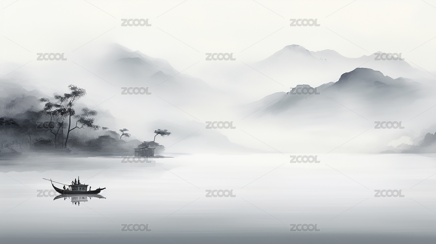 宁静写意中国风水墨山水画