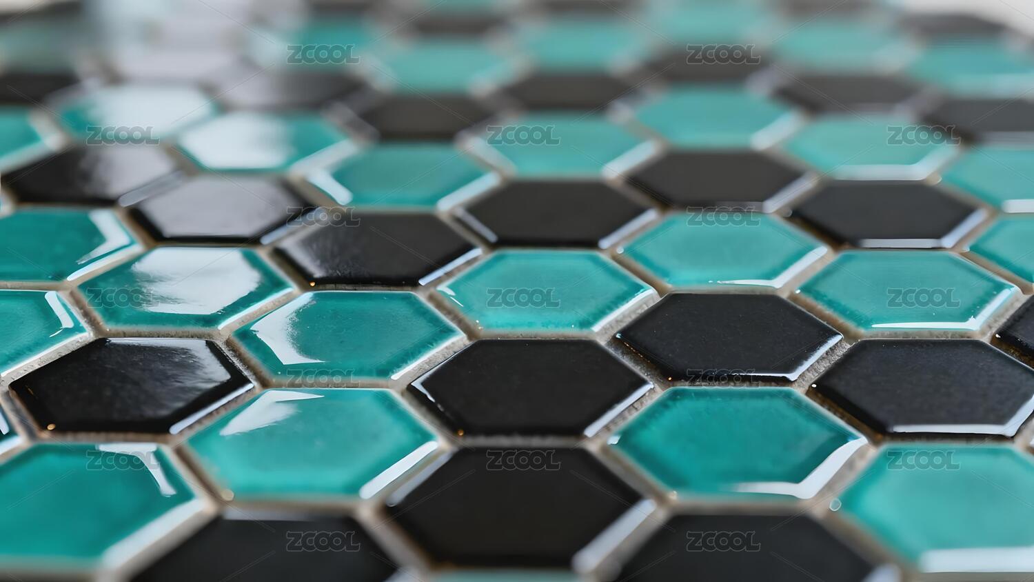 青黑六边形瓷砖拼贴