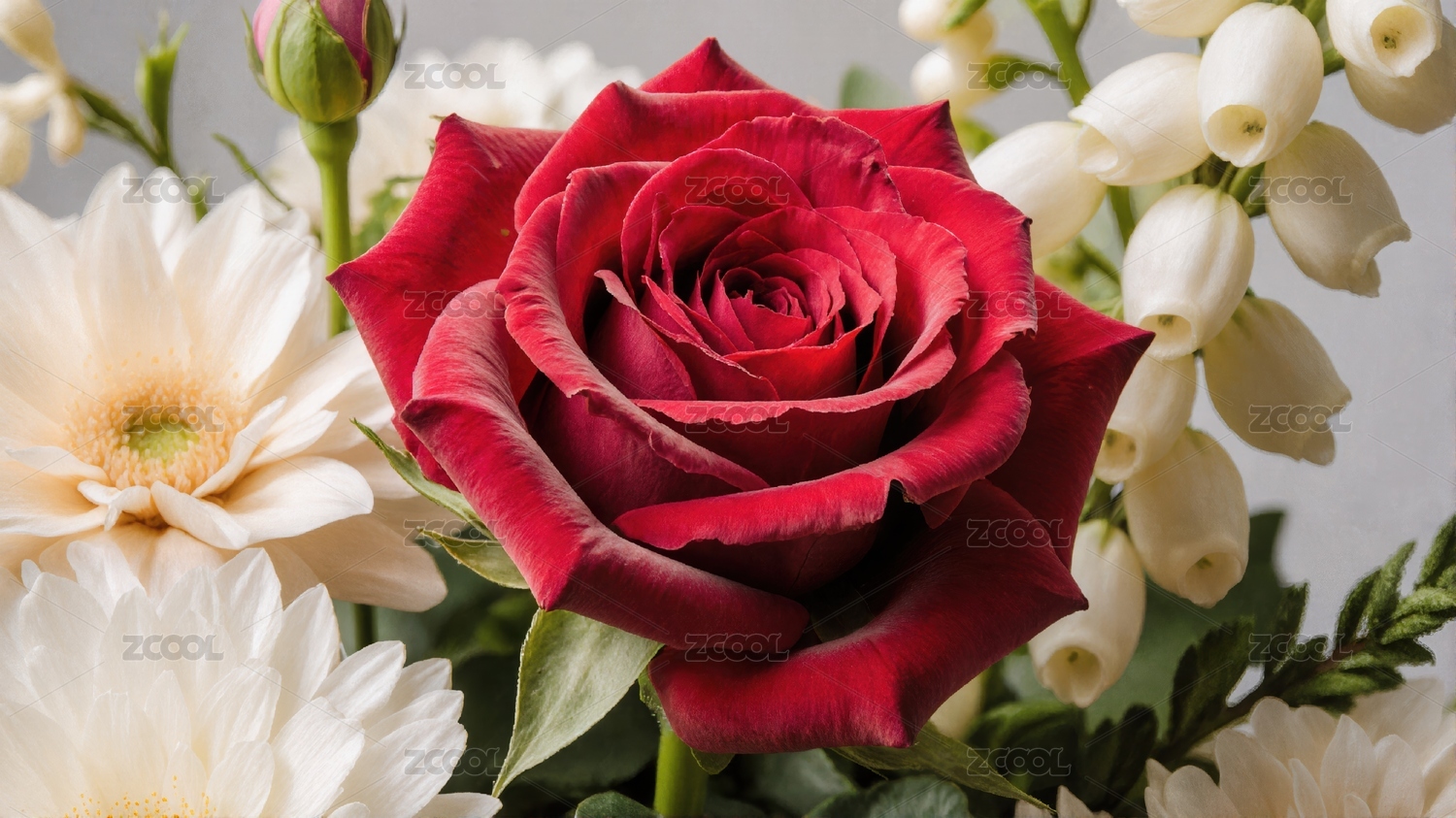 许多色彩鲜艳的鲜花扎成美丽的花束