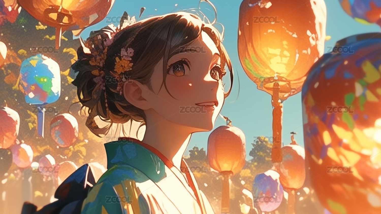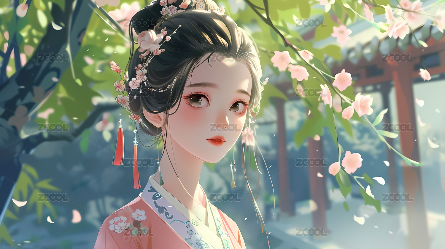 手绘卡通动漫唯美可爱的中国古风古装女孩插