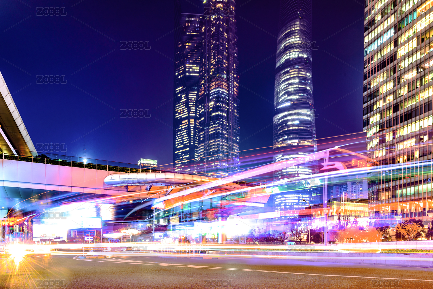 上海陆家嘴建筑景观夜景和车流光影轨迹