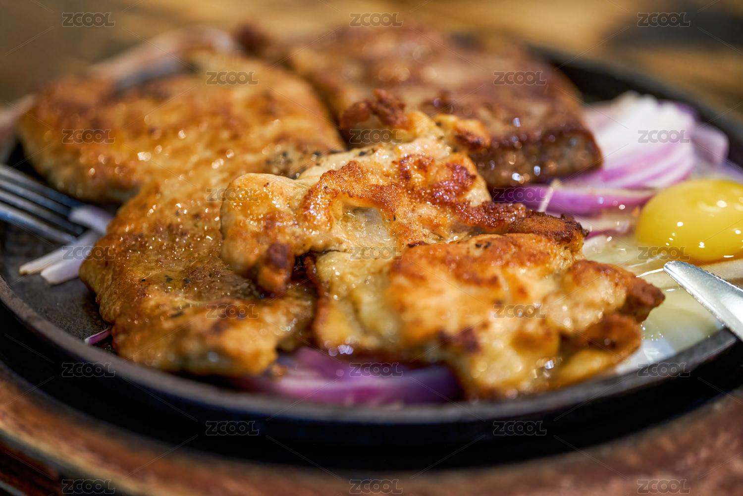港式茶餐厅一份美味诱人的铁板牛扒鸡扒猪扒