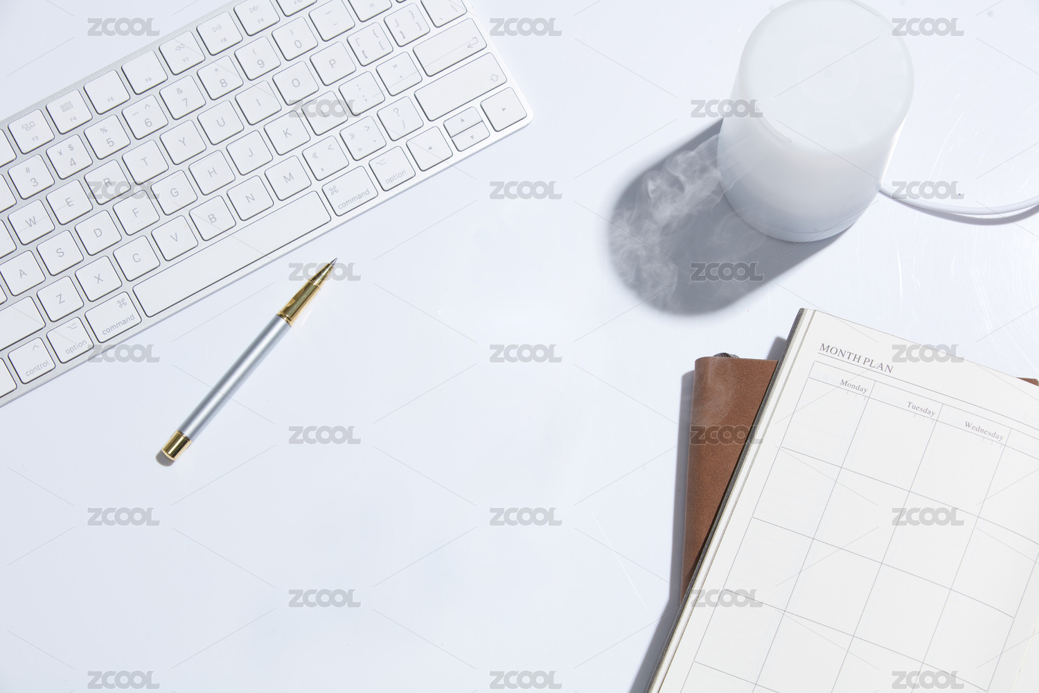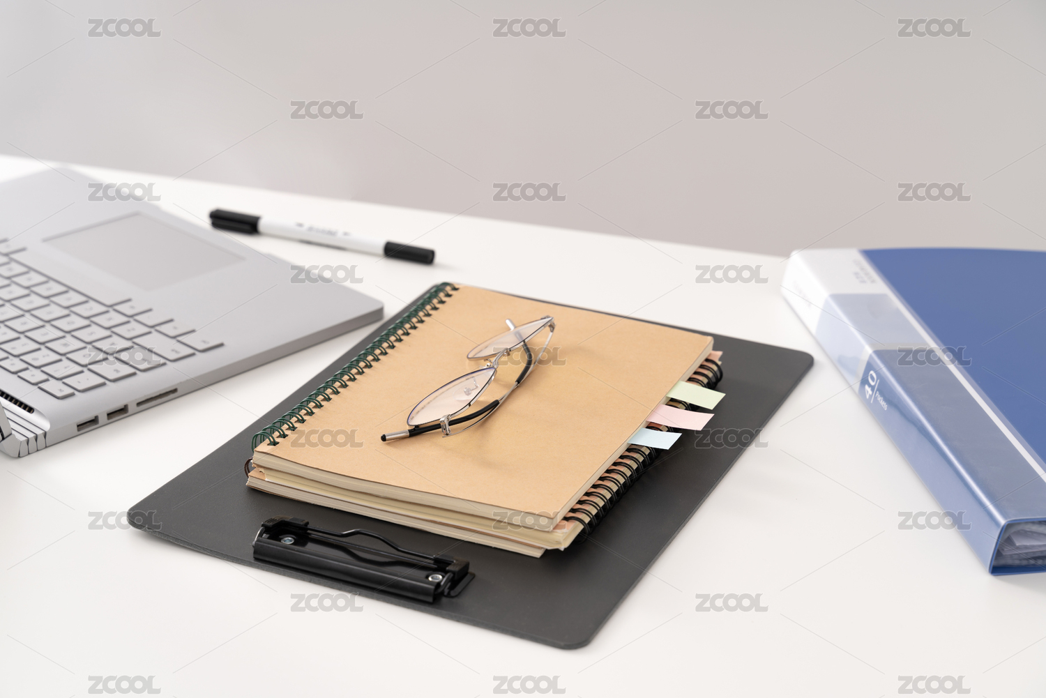 办公桌面上的文件夹和笔记本电脑,休闲办公