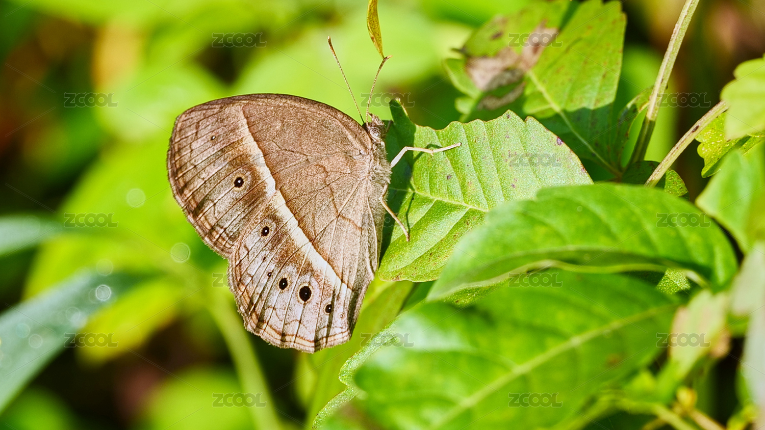 一只蝴蝶(小眉眼蝶)在叶子上特写镜头