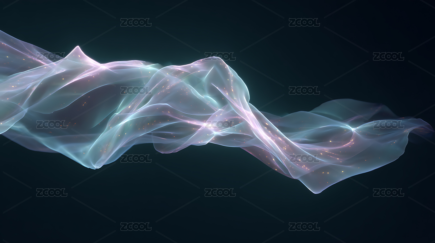 3D渲染抽象创意彩色炫彩布料 丝带线条